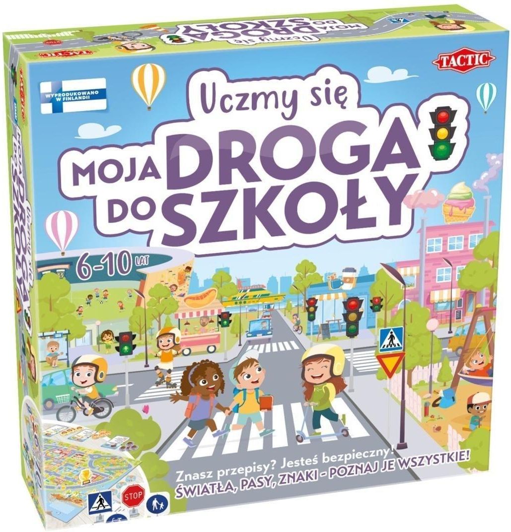 Bo bezpieczeństwo to podstawa! Moja Droga to Szkoły to edukacyjna gra planszowa, w której dzieci wcielają się w grupę przyjaciół wracających ze szkoły. Ich celem jest jak najszybsze dotarcie do domu, przestrzegając zasad ruchu drogowego! Każdy gracz prowadzi swoją postać przez cztery punkty na mapie, odpowiadając po drodze na pytania dotyczące znaków oraz bezpiecznego zachowania na drodze. Ruchome znaki drogowe sprawiają, że każda rozgrywka wygląda inaczej. Gra łączy zabawę z nauką, rozwijając spostrzegawczość i dobre nawyki; dzieci uczą się przez zabawę i naśladownictwo. To idealna gra edukująca o ruchu drogowym dla dzieci od 6 roku życia. Zawartość: Plansza do gry, 100 kart (75 kart z pytaniami, 25 kart akcji), 4 pionki postaci z plastikowymi podstawkami, 4 płytki tras, 16 żetonów, 1 licznik punktów + żeton opony, 1 trofeum z plastikową podstawką, 1 żeton rowerzysty, 8 kartonowych znaków drogowych z plastikowymi podstawkami, 1 kartonowy bilet autobusowy, 1 kartonowa płytka promu, tarcza ze strzałką i pinezką do kręcenia, instrukcja. Średni czas gry: 15 minut. Gra dla 2-4 graczy w wieku 6-10 lat. Od 1967 roku fińska firma Tactic Games jest znana z innowacyjnych, ekscytujących i jakościowych gier, które zachwycają miliony rodzin na całym świecie. Naszą misją jest produkcja gier planszowych, które pomagają rodzinom i przyjaciołom spędzać razem czas. Chcemy, aby nasze gry przyciągały do wspólnej dobrej zabawy, śmiechu i rozwiązywania problemów. Witamy w ekscytującym świecie nordyckich gier! Bawmy się RAZEM! Firma Tactic Games posiada certyfikaty FSC i PEFC i swoją polityką dąży do minimalizacji śladu węglowego. Wysokość: 250 Szerokość: 250 Głębokość: 62.000000 Grupa wiekowa: 6+ Isbn: 6416739608501 Rodzaj: Zabawki
