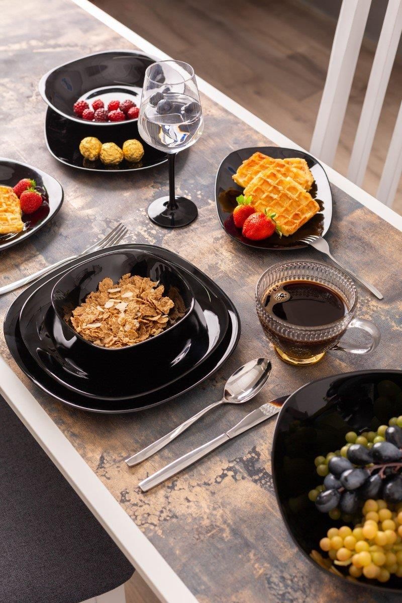 Komplet trzech półmisków. Odkryj elegancję i nowoczesność z kolekcją salaterek i półmisków Black Harmony od Altom Design. Te wyjątkowe naczynia, wykonane ze szkła opalowego w intensywnym kolorze czarnym, łączą w sobie funkcjonalność z niepowtarzalnym stylem. Ich minimalistyczny design doskonale wpisuje się w aktualne trendy, a jednocześnie sprawia, że każda potrawa prezentuje się wyjątkowo. Idealne na różne okazje – od codziennych posiłków po eleganckie przyjęcia – salaterki i półmiski Black Harmony dodadzą klasy każdemu stołowi. Szkło opalowe, z którego są wykonane, jest nie tylko estetyczne, ale także niezwykle trwałe i łatwe do czyszczenia. Dzięki gładkiej powierzchni, naczynia te zachwycają swoją elegancją i są doskonałym uzupełnieniem każdej kuchni. Zainwestuj w nowoczesny wygląd swojego stołu z kolekcją Black Harmony i ciesz się nie tylko smakiem, ale także wizualnym doznaniem podczas każdego posiłku!