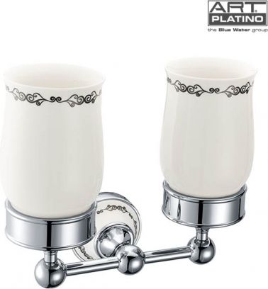 Art Platino NIK Uchwyt z dwoma szklankami NIK-57052 materiał: mosiądz wykończenie: chrom białe wstawki wykonane z porcelany gwarancja 5 lat DARMOWA DOSTAWA