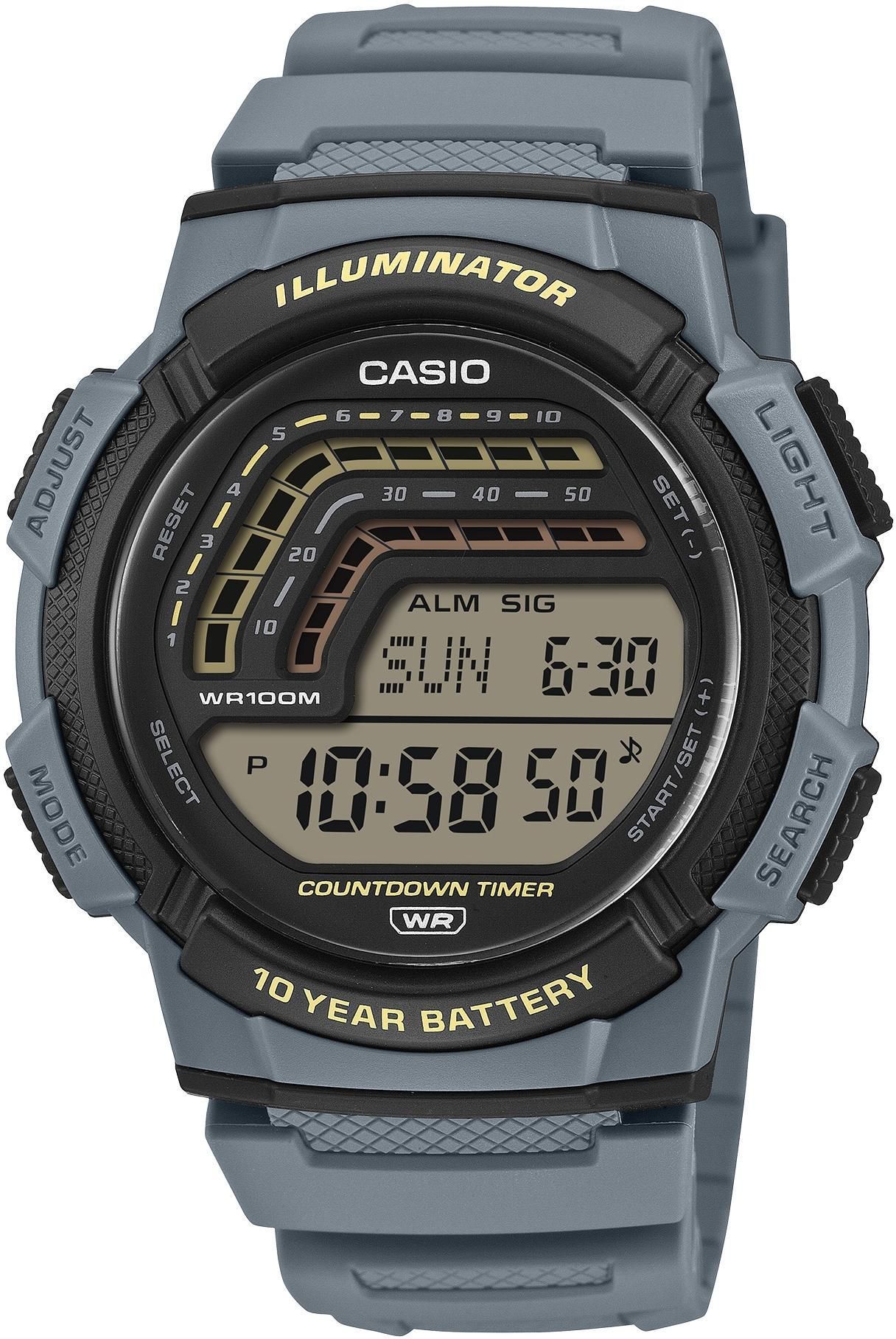 ODKRYJ WIĘCEJ NOWOŚCI CASIO Odkryj Zegarek CASIO Sport WS-1800 -2AVEF CASIO Sport WS-1800-2AVEF to cyfrowy zegarek męski, zaprojektowany z myślą o funkcjonalności i codziennej wygodzie. Charakteryzuje się dynamicznym stylem, nowoczesnym wyglądem i solidną konstrukcją, co czyni go idealnym wyborem dla mężczyzn prowadzących aktywny tryb życia. Tarcza i szkło – funkcjonalność i ochrona Zegarek wyposażony jest w cyfrowy wyświetlacz o wysokiej czytelności, który prezentuje czas, datę i inne funkcje w przejrzysty sposób. Akrylowe szkło charakteryzuje się odpornością na stłuczenia, co sprawia, że świetnie sprawdza się podczas aktywności fizycznych. Mechanizm - trwałość i niezawodność Zegarek napędza niezawodny mechanizm kwarcowy, który gwarantuje precyzyjne odmierzanie czasu i bezproblemową obsługę. Prosta, klasyczna konstrukcja mechanizmu sprawia, że model ten jest praktycznym dodatkiem do codziennego noszenia. Koperta i pasek Koperta zegarka ma średnicę 48 mm i grubość 13 mm i wykonana została z tworzywa sztucznego w intensywnym niebieskim kolorze. Zegarek wyposażono w pasek z żywicy, który zapewnia wygodę noszenia, odporność na wilgoć i dobrą wentylację skóry. Szerokość paska przy kopercie wynosi 18 mm, co zapewnia stabilne i komfortowe dopasowanie do nadgarstka.