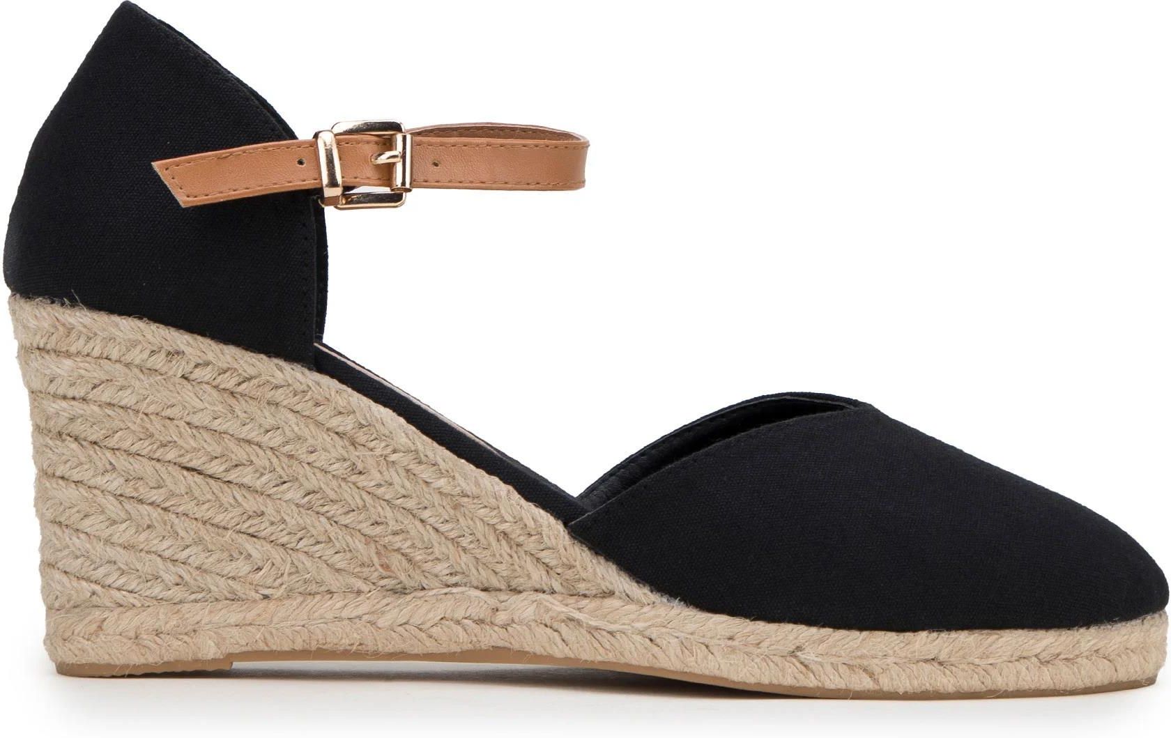 Damskie sandały na koturnie. Espadryle to modny dodatek, który stylowo podkreśli niemal każdą letnią stylizację. Koturn pokryty charakterystyczną plecionką doda Ci kilku centymetrów wzrostu i wysmukli sylwetkę. Dzięki zapięciu na sprzączkę umieszczonym na cieniutkim pasku na kostce stabilnie utrzymają stopę. Noś je do długich sukienek w klimacie boho lub połącz na przykład z ulubionymi dżinsami i koszulą we wzory. Damskie espadryle z paskiem to ponadczasowy wybór na wiele sezonów, który warto mieć w swojej szafie.Nasza rada: noś ją z ulubioną plecioną shopperką. tworzywo sztuczne; wkładka i wyściółka z tworzywa sztucznego; podeszwa wykonana z tworzywa sztucznego; na koturnie; nosek migdał; zapinane na sprzączkę. materiał syntetyczny materiał syntetyczny materiał syntetyczny