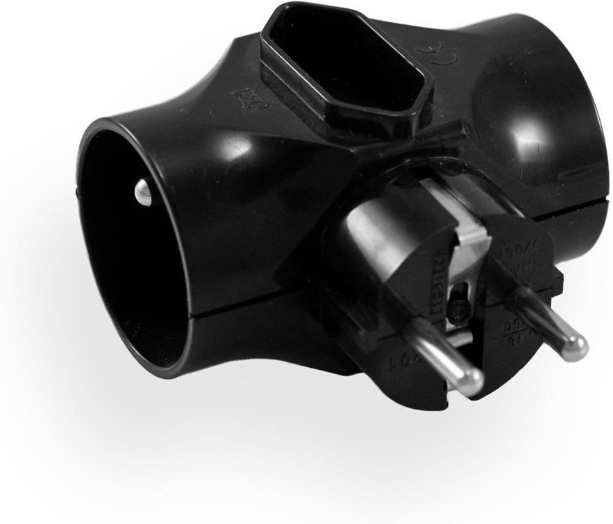 Elgotech Rozgałęźnik Wtyczkowy 2-Gniazda Z/U + 1-Gniazdo B/U Euro Czarny R-201-2 Halinów