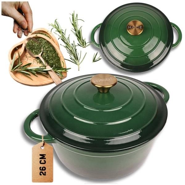 Emaliowany Garnek Żeliwny 26Cm 5L Hage Zielony Halinów