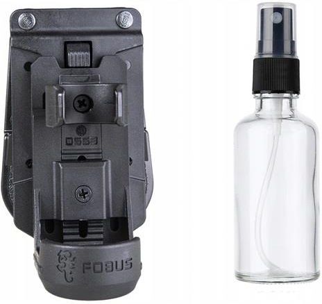 Kabura etui Fobus DSS3 to uniwersalny, a jednocześnie bardzo dopracowany produkt na nowej platformie mocowania Rail. Wykonana została ze specjalnej, bardzo wytrzymałej masy polimerowej, wtryskiwanej ciśnieniowo. W kaburze możesz przenosić większość latarek ręcznych jak również większość gazów pieprzowych. oraz dzięki dodatkowemu pojemnikowi możesz mieć zawsze pod ręką płyn do dezynfekcji. W celu dezynfekcji wystarczy, że naciśniesz na pompkę i zdezynfekujesz ręce. Nie musisz wyciągać pojemnika z kabury. Kabura DSS3 posiada regulację wysokości mocowania obejmy, która przydaje się w dopasowaniu do wysokości pojemnika z gazem lub latarki. Klips trzymający latarkę lub gaz jest bardzo wytrzymały i sprężysty dzięki czemu przenoszony produkt jest bardzo stabilny i nie ma ryzyka, że sam wypadnie. Tylko gwałtowniejsze wyszarpnięcie powoduje zwolnienie trzymanego przez klips produktu. Maksymalna średnica wpinanego produktu jest ograniczona przez średnicę dolnej stopki kabury dzięki czemu wiemy jaki produkt możemy w niej umieścić. Gaz pieprzowy możesz wpiąć w kaburę w taki sposób, że po wypięciu gazu jest on od razu ukierunkowany w dłoni w prawidłowy sposób do użycia co zdecydowanie skraca czas reakcji. Zalecamy stosowanie gazów pieprzowych z klapką zabezpieczającą. Tylko teraz do profesjonalnej kabury na gaz pieprzowy lub latarkę dodajemy oryginalny pojemnik na płyn do dezynfekcji (ilość pojemników jest ograniczona). Rozbudowany zestaw kabury DSS3 zawiera: płetwę do pasa z systemem montażu Rail kaburę wpinaną do płetwy dwie obejmy/klipsy stabilizujące (mniejsza i większa) pojemnik na płyn dezynfekcyjny 75ml (ilość ograniczona) W przypadku potrzeby oświetlenia otoczenia oraz zajętości obu rąk można zamocować uchwyt w pozycji horyzontalnej dzięki czemu bez konieczności posiadania latarki czołowej będziemy mogli wygodnie wykonywać czynności. Kaburę można odpiąć od płetwy wraz z produktem i odłożyć a w razie potrzeby przypiąć ponownie. Oczywiście przy tak szerokim spektrum dostępnych na rynku latarek jak i gazów zawsze może się zdarzyć, że znajdzie się latarka lub gaz niepasujący. Uwarunkowane jest to głównie kształtem głowicy latarki lub kształtem pojemnika z gazem. Jednak my przetestowaliśmy dziesiątki modeli i nie znaleźliśmy takiego przypadku. Cechy produktu: Opakowanie zawiera dwa klipsy (duży i mały), jedną podstawkę dolną i jedną płetwę na pas. Dodatkowo producent dołożył do zestawu pasującą do uchwytu buteleczkę z atomizerem na środek dezynfekujący (pustą), co pomoże szybko zdezynfekować ręce w każdej sytuacji. Duży klips i podstawka są fabrycznie zmontowane na platformie. Wysokość położenia klipsa można regulować poprzez poluzowanie śruby. Klips można ustawić w pionie lub poziomie poprzez poluzowanie śruby, ustawienie w wybranej pozycji i następnie dokręcenie śruby. W przypadku pozycjonowania poziomego dolna podstawka nie jest konieczna i można ją zdemontować. Klips trzymający latarkę lub gaz jest bardzo wytrzymały i sprężysty dzięki czemu przenoszony produkt jest bardzo stabilny i nie ma ryzyka, że sam wypadnie. Tylko gwałtowniejsze wyszarpnięcie powoduje zwolnienie trzymanego przez klips produktu. Kaburę można odpiąć od płetwy wraz z produktem i odłożyć a w razie potrzeby przypiąć ponownie.