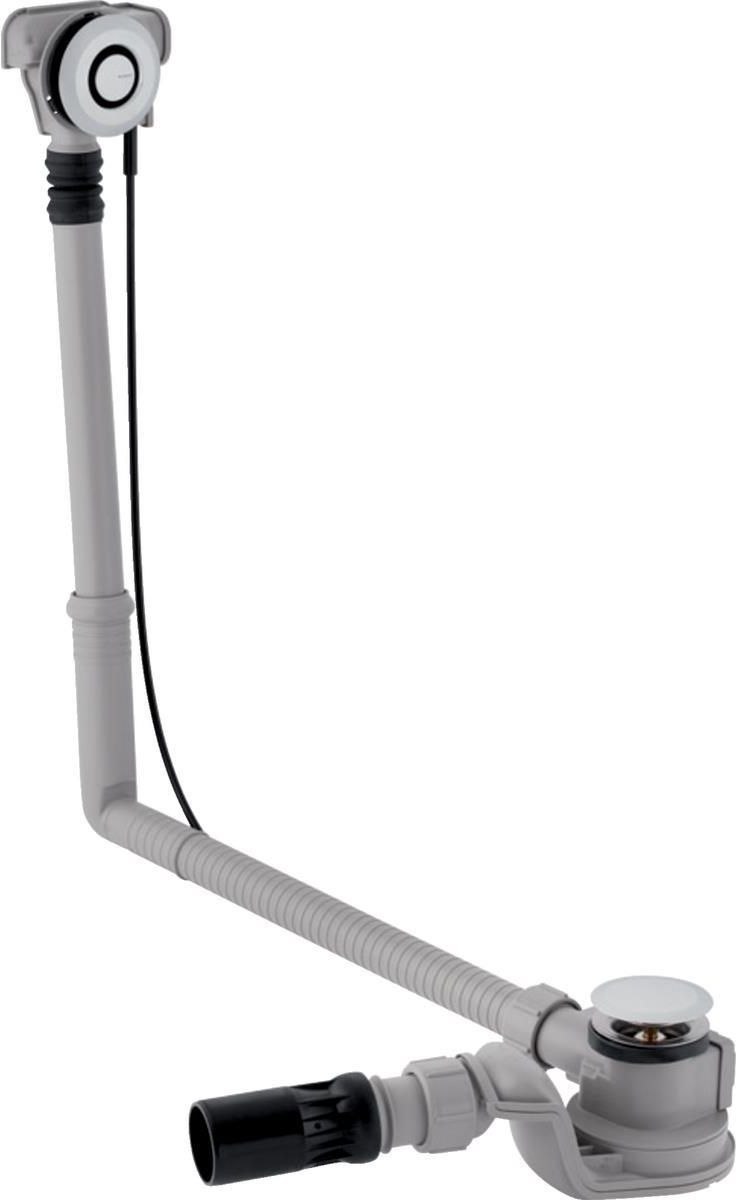 Zestaw odpływowo-przelewowy Geberit Uniflex PushControl do wanien, długi Do wanien z otworem odpływowym ø 52 mm Do montażu w wannach o długościach niestandardowych Charakterystyka Przyłącze do przewodu kanalizacyjnego z odpływem PE z przegubem kulowym ø 50 mm, na wtyk lub do zgrzewania Zawór odpływowy ze stali nierdzewnej Wysokość zabudowy 90 mm Syfon obracany o 270° Syfon wannowy z wbudowanym przyciskiem uruchamiającym Dane techniczne Przepustowość wyjściowa 1 l/s Przepustowość przelewu 0,65 l/s Wysokość zasyfonowania 50 mm