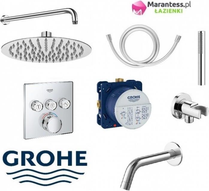 Kompletny system podtynkowy z bateri Grohe Grohtherm Smartcontrol , wylewk wannow, deszczownic i suchawk. Elementy skadowe zestawu : 1. GROHE Grohtherm Smartcontrol bateria termostatyczna 3-drona chrom 291260002. GROHE Rapido SmartBox element podtynkowy 356000003. HYDROLAND deszczownica stalowa, …