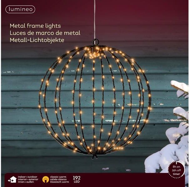 Kula metalowa czarna 192 LED; kod produktu: 491676 Kula metalowa czarna 192 LED Kula metalowa LED do zastosowania wewnętrznego i zewnętrznego, który pozwoli na stworzenie klimatu magicznych, rodzinnych świąt. Połączenie prostoty i nowoczesności, buduje prawdziwie wyjątkowy nastrój. Idealnie sprawdzi się jako dekoracja w domu, lokalu handlowym lub gastronomicznym. Parametry: Kolor: czarnyKolor światła: klasyczny ciepłyDługość przewodu: 50 cmŚrednica: 28 cm