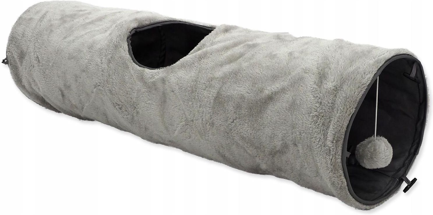 Magic Cat Tunel dla kotaSzeleszczący tunel - interaktywna zabawka dla kotów, wspierająca naturalne instynkty mruczków. Cechy produktu: Wymiary: 90cm x 24cm Kolor: szary Z zewnątrz miękki plusz Od środka szeleszczący materiał Pluszowa piłeczka Dodatkowe wejście z boku tunelu Tunel dla kota, wykonany z wysokiej jakości pluszu -mięciutkiego, przyjemnego w dotyku materiału. Zabawka, która jest doskonałym źródłem rozrywki dla mruczków w każdym wieku. Wewnątrz tego tunelu dla kota znajduje się piłeczka, która zaciekawia i rozbudza koci instynkt. Szelest foli intryguje i zachęca pupila do igraszek. Dodatkowe, boczne wejście uatrakcyjnia gonitwy i polowania. Tunel może być idealnym miejscem do schowania się i zabawy. Doskonale sprawdzi się jako zaciszna, kocia kryjówka. To również bezpieczne schronienie, w którym futrzak może się zdrzemnąć lub oddać się błogiemu leniuchowaniu. Zalety Magic Cat tunelu dla kota: doskonale sprawdzi się podczas zabawy i jako kryjówka jedna z ulubionych zabawek kota oferuje wiele możliwości zabawy po złożeniu zajmuje mało miejsca łatwo i szybko się składa wytrzymały wykonany z miłego w dotyku materiału szeleści zapobiega nudzie piłeczka i dodatkowe, boczne wejście uatrakcyjniają zabawę Szeleszczące tunele to jedne z ulubionych kocich zabawek. Każdy kot, niezależnie do wieku potrzebuje zabawy i uwielbia się bawić. Pozbawiony zabawek i uwagi właściciela kot, nudzi się i może psocić lub niszczyć meble. Każdy kot chce żeby codziennie się z nim pobawić. Nadmiar energii, której nie może spożytkować może go bardzo stresować. Koty uwielbiają się bawić. Zabawa w chowanego i w polowanie to jedne z ich ulubionych. Tunele dla kotów, mają kilka cech które sprawiają, że często są zabawką na długo przykuwająca uwagę kota. Szeleszczą, intrygują, służą jako kryjówka i miejsce do zabawy w polowanie i w chowanego. Pozwalają na zarówno samodzielną jak i wspólną zabawę z opiekunem. Więcej o tym jak wybrać kotu zabawkę przeczytasz w naszych artykułach: