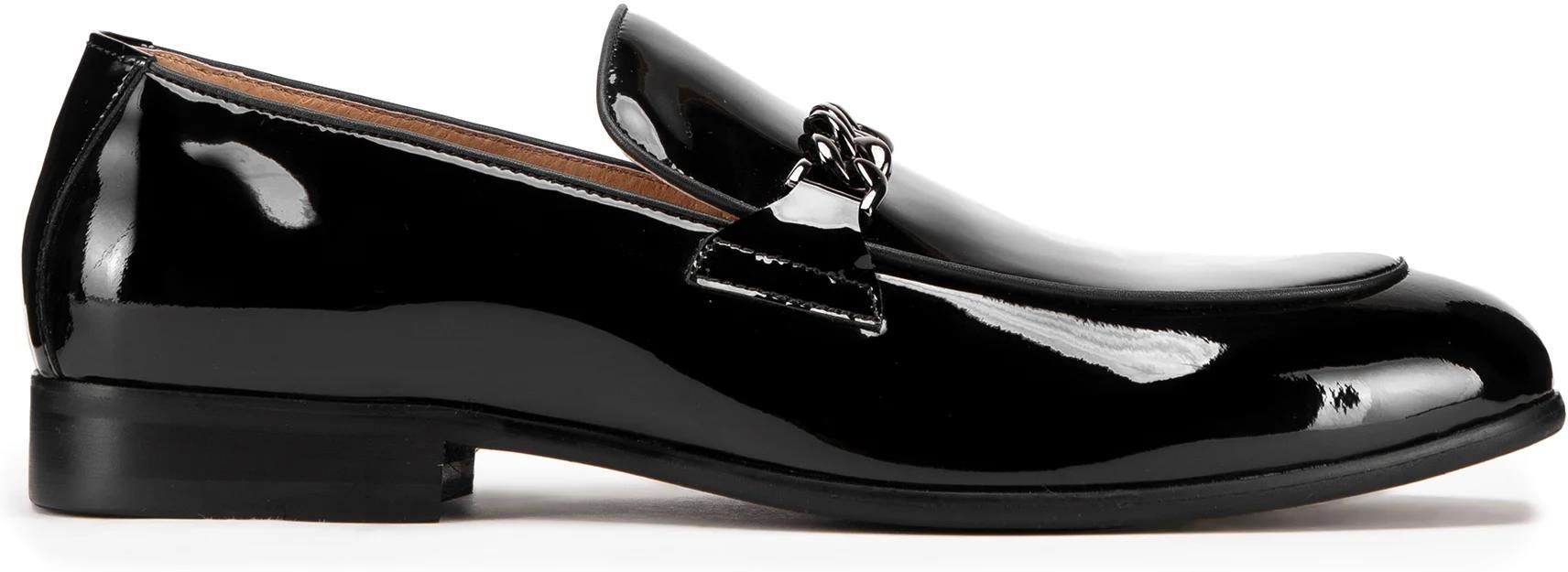 Męskie mokasyny z łańcuszkiem i kwadratowym noskiem czarne Halinów