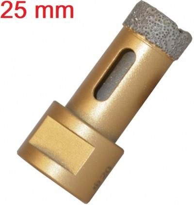 MODECO EXPERT OTWORNICA DIAMENTOWA Ø25MM NA SZLIFIERKĘ Z GWINTEM M14 MN-76-225 ZAZNACZONEGO NA ZDJĘCIU Idealne do wiercenia otworów w bardzo twardych materiałach wykończeniowych. Wytrzymałość, trwałość i wysoka jakość dzięki zastosowaniu technologii Vacuum Brazed, czyli lutowania próżniowego. Wiercenie na sucho dzięki umieszczonemu w środku otwornic woskowi, który podczas wiercenia topi się i chłodzi część roboczą diamentów. Uchwyt z gwintem M14 pasuje do szlifierek kątowych. Precyzyjne punktowe wiercenie dzięki czemu otwór ma gładkie krawędzie bez pęknięć, odprysków i odłamań. Wysoka wydajność wiercenia nawet w bardzo twardych materiałach dzięki wytrzymałemu i czystemu połączeniu w próżni diamentów z korpusem, które zwiększa odporność na wysokie temperatury oraz tarcie. Max. 12 000 obr./min. pozwala na zastosowanie z większością szlifierek kątowych. Korpus z wytrzymałej stali nie pęka podczas wiercenia nawet małymi średnicami i gwarantuje dużą żywotność. Zastosowanie Do wiercenia otworów w twardych materiałach wykończeniowych takich jak ceramika, gres, terakota, marmur, granit.