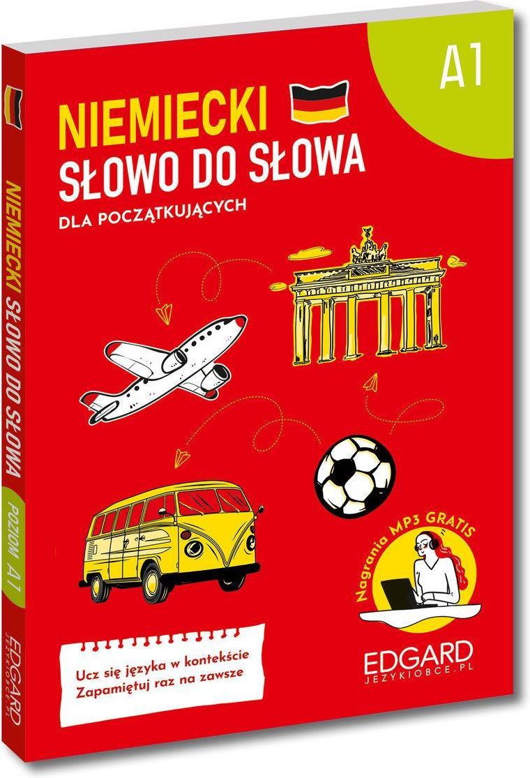 Czy wiesz, że wystarczy, że nauczysz się dosłownie trzech niemieckich słówek dziennie, aby już za rok móc zrozumieć nawet 80% podstawowej komunikacji w języku niemieckim? Brzmi strasznie? Strasznie fajnie! Z kursem „Słowo do słowa” skupiasz się na najbardziej przydatnych wyrazach i zwrotach, uporządkowanych i gotowych do natychmiastowego użycia w codziennej rozmowie.Już na początku nauki niemieckiego postaw na sprytną, skuteczną i – co najważniejsze – trwałą naukę języka.Ucz się w kontekście i zbuduj solidne podstawy.Niemiecki „Słowo do słowa” to:•gotowe zestawy tematyczne, bo szybciej zapamiętujesz słowa, które są ze sobą powiązane•mapy myśli i ilustracje, które pobudzają wyobraźnię i wzmacniają skojarzenia•różnorodne ćwiczenia, dzięki którym utrwalasz nie tylko słowa, ale również aktywnie poznajesz całe wyrażenia i struktury gramatyczne na poziomie A1•naturalne zwroty, których na co dzień używają native speakerzy•nagrania MP3, aby słuchać, powtarzać i zapamiętywać raz na zawsze•listy niemieckich słówek do monitorowania postępówDzięki temu, bez wysiłku wskoczysz na wyższy poziom i zdobędziesz językową pewność siebie. A tam będą już czekać kolejne części kursu „Słowo do słowa”. Niemiecki Słowo do słowa A1 – Skuteczna nauka języka niemieckiego Czy wiesz, że wystarczy nauczyć się zaledwie trzech niemieckich słówek dziennie, aby już za rok zrozumieć 80% podstawowej komunikacji w tym języku? Z kursem „Słowo do słowa” skoncentrujesz się na najważniejszych wyrazach i zwrotach, które są uporządkowane i gotowe do natychmiastowego użycia w codziennych rozmowach. Postaw na sprytną, skuteczną i trwałą naukę języka niemieckiego! Dla kogo jest ta książka? Osoby początkujące, które chcą nauczyć się języka niemieckiego od podstaw Uczniowie i studenci przygotowujący się do egzaminów z języka niemieckiego Osoby planujące wyjazd do Niemiec i potrzebujące podstawowej komunikacji Każdy, kto pragnie wzbogacić swoje słownictwo w języku niemieckim Co zyskasz dzięki tej publikacji? Skuteczną naukę poprzez gotowe zestawy tematyczne, co ułatwia zapamiętywanie słów Mapy myśli i ilustracje, które pobudzają wyobraźnię i wzmacniają skojarzenia Różnorodne ćwiczenia, które pomagają utrwalić słownictwo oraz poznawać całe wyrażenia i struktury gramatyczne Naturalne zwroty używane przez native speakerów, co zwiększa autentyczność nauki Możliwość słuchania nagrań MP3, co wspiera proces zapamiętywania i powtarzania Kluczowe tematy i obszary Podstawowe słownictwo i zwroty w języku niemieckim Tematyczne zestawy słów związane z codziennym życiem Gramatyka na poziomie A1 Techniki efektywnej nauki języków obcych O Wydawcy Edgard to renomowane wydawnictwo specjalizujące się w publikacjach edukacyjnych, które od lat wspiera uczniów i nauczycieli w nauce języków obcych. Dzięki innowacyjnym metodom i atrakcyjnym materiałom, Edgard zyskał zaufanie wielu osób pragnących efektywnie przyswajać nowe języki. Producent/osoba odpowiedzialna za bezpieczeństwo produktuEDGARD Mariusz JachimczukBelgijska 1102-511 Warszawaedgard@edgard.pl22 853 11 38