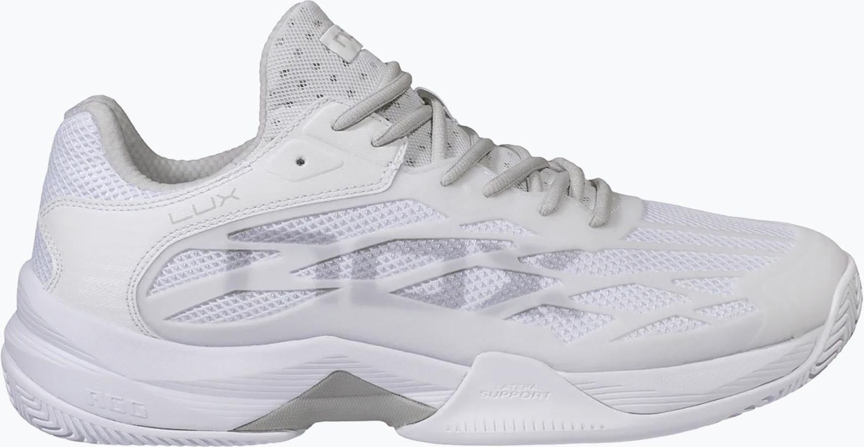 Buty do padla NOX AT10 Lux white/grey to doskonały wybór dla entuzjastów gry w padla, którzy poszukują komfortu i stabilności na korcie. Dzięki zastosowaniu wysokiej jakości materiałów oraz zaawansowanych technologii, buty te zapewniają wyjątkową przyczepność i wsparcie. Podeszwa środkowa wykonana z octanu etylenowo-winylowego (EVA) gwarantuje odpowiednią amortyzację podczas intensywnych ruchów. Innowacyjna technologia Optimal GRIP Buty do padla NOX AT10 Lux white/grey zostały wyposażone w technologię Optimal GRIP, która zapewnia doskonałą przyczepność na różnych nawierzchniach kortów. Dzięki tej technologii zawodnicy mogą swobodnie poruszać się po korcie, unikając poślizgów i zapewniając sobie większą kontrolę nad każdym ruchem. Zaawansowane rozwiązania w konstrukcji podeszwy zewnętrznej pozwalają na dynamiczne zmiany kierunku oraz szybkie reakcje. Komfort i wsparcie dzięki OrthoLite® Wkładka OrthoLite® w butach do padla NOX AT10 Lux white/grey to gwarancja komfortu i higieny. Materiał ten charakteryzuje się doskonałą oddychalnością oraz właściwościami antybakteryjnymi, co przekłada się na świeżość i komfort podczas długotrwałego użytkowania. Dodatkowo, technologia OrthoLite® wspiera odpowiednie dopasowanie do stopy, minimalizując ryzyko obtarć. Wytrzymałość dzięki technologii ABRAXONE Buty do padla NOX AT10 Lux white/grey wykorzystują technologię ABRAXONE, która zwiększa ich odporność na zużycie. Dzięki zastosowaniu trwałych materiałów, buty te sprawdzają się nawet w najbardziej wymagających warunkach na korcie. Dodatkowo, sznurowane zapięcie pozwala na indywidualne dopasowanie do stopy, co zwiększa stabilność i komfort użytkowania. Buty do padla NOX AT10 Lux - cechy: Podeszwa środkowa wykonana z octanu etylenowo-winylowego EVA zapewniająca amortyzację; Technologia Optimal GRIP zapewniająca doskonałą przyczepność na różnych nawierzchniach kortów; Wkładka OrthoLite® zapewniająca komfort i higienę użytkowania; Oddychający materiał wkładki OrthoLite® z właściwościami antybakteryjnymi; Technologia ABRAXONE zwiększająca odporność na zużycie; Sznurowane zapięcie umożliwiające indywidualne dopasowanie do stopy; Zaawansowane rozwiązania w konstrukcji podeszwy zewnętrznej pozwalające na dynamiczne zmiany kierunku.