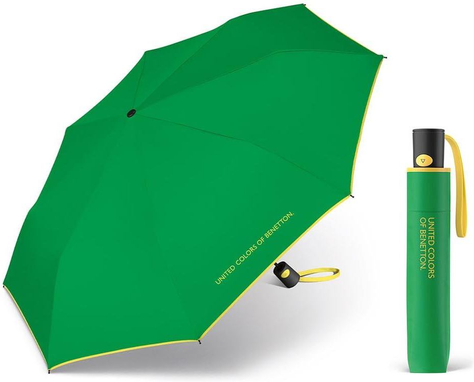 Lekka, kompaktowa parasolka automatyczna chroniąca przed deszczem i wiatrem Benetton Mini AC.