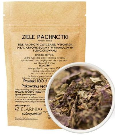 Pachnotka zwyczajna ziele 50g zielarzpolski.plDlaczego warto wybrać ziele pachnotki od zielarzpolski.pl?Surowiec wysokiej jakości.Produkt 100 % naturalny.Pakowane ręcznie w Polscecięte ziele - wygodne do mieszania z innymi ziołami lub picia samodzielnie.Praktyczne i bezpieczne opakowanie z wielokrotnym zamknięciem strunowym.Napar z pachnotki ma intensywny, aromatyczny smak z wyraźnymi nutami ziołowymi, miętowymi, cytrusowymi i trawiastymi. Ziele pachnotki zwyczajnej wspomaga układ odpornościowy w prawidłowym funkcjonowaniu.Sposób użycia:Jedną łyżeczkę zalać szklanką wrzątku i pozostawić pod przykryciem do zaparzenia na około 10-15 minut. Pić 1-2 razy dziennieWygodne opakowanieDzięki zastosowaniu opakowania typu DOYPACK z membraną z wygodnym zamknięciem strunowym mamy pewność że zioła będą odpowiednio przechowywane i dłużej zachowają świeżość.Składniki:pachnotka ziele 100%kraj pochodzenia surowca: ChinySposób przechowywania:Przechowywać w suchym miejscu, w temperaturze pokojowej w szczelnie zamkniętym opakowaniu.Przechowywać w miejscu niedostępnym dla małych dzieci.Zawartość netto: 50gZdjęcia ziół mogą być zdjęciami symbolicznymi lub propozycją podania. Informację o ziołach nie stanowią porady medycznej. Kobiety w ciąży, matki karmiące, osoby zażywające leki lub osoby chore powinny przed użyciem skontaktować się z lekarzem. Nie stosować w przypadku nadwrażliwości.Wyprodukowano w Polsce dla:PERSEA SP. Z O.O.ul. Rakowiecka 5/3702-517 Warszawa
