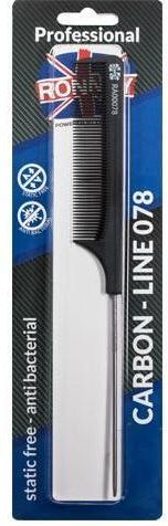 Ronney Carbon-Line 078 to profesjonalny grzebień ze szpikulcem. Dzięki niemu precyzyjnie wydzielisz z włosów pożądane pasma. Doskonale sprawdza się podczas zabiegów chemicznych, a także podczas tworzenia upięć. Produkt ten wykonany został z wysokiej jakości materiałów, jest odporny na uszkodzenia i działanie wysokich temperatur. Co więcej, posiada on powłokę antybakteryjną i właściwości antystatyczne. Grzebień Carbon-Line 078: posiada powłokę antybakteryjną zapobiega puszeniu się pasm wyposażony został w metalowy szpikulec jest odporny na uszkodzenia dobrze znosi wysokie temperatury Stosowanie: Grzebień świetnie sprawdza się podczas zabiegów chemicznych i tworzenia upięć, gdyż posiada metalowy szpikulec.