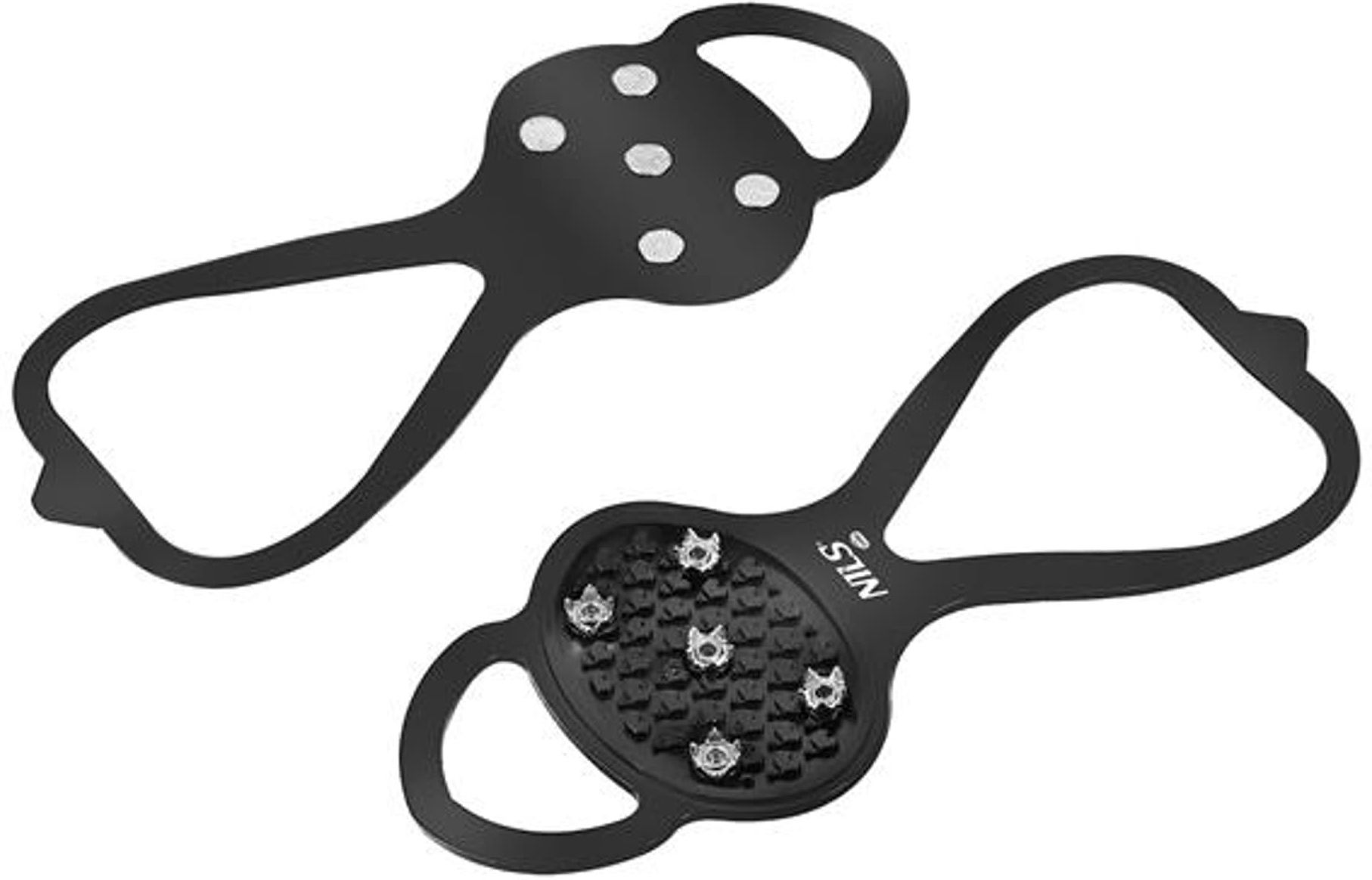 Dane techniczne Numer katalogowy: NC1709 Wymiary: S: dł. 21cm, szer. 8cm, M: dł. 25,7cm, szer. 9,2cm, L : dł. 28,5cm, szer. 11cm Kolor: Czarny Materiał: TPE, stal nierdzewna Ilość zębów: 5 Waga: S: 80g, M: 100g, L: 120g Zestaw zawiera Czarne nakładki: 2 sztuki Pokrowiec do przechowania: 1 szt Nasz firmowy kalendarzyk: Gratis NC1709 marki NILS CAMP to antypoślizgowe nakładki na buty, które zapewniają świetną przyczepność na śliskiej powierzchni pokrytej lodem lub błotem. Doskonale sprawdzą się również podczas zimy w mieście. NC1709 są bardzo lekkie i łatwe w zakładaniu dlatego produkt dedykowany jest dla każdego bez względu na wiek. NC1709 od spodu posiadają 5 zębów wykonanych ze stali nierdzewnej. Natomiast górna część nakładek wykonana została z solidnej i rozciągliwej gumy, dzięki czemu użytkownik jest w stanie w łatwy sposób dopasować je do swojego obuwia. Wszystko to razem powoduje, że konstrukcja nakładek jest bardzo wytrzymała i posłuży na wiele sezonów. Dodatkowo NC1709 w zestawie posiada pokrowiec do przechowywania i łatwego transportu. Wymiary: S: dł. 21cm, szer. 8cm 80 g M: dł. 25,7cm, szer. 9,2cm 100 g L : dł. 28,5cm, szer. 11cm 120 g