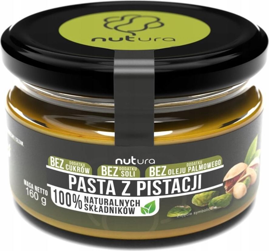 NUTURA Pasta z pistacji 160 g NUTURA Pasta z pistacji 160 g najważniejsze właściwości 100% pistacji bez dodatku cukru, soli i oleju palmowego naturalny, intensywnie orzechowy smak i aksamitna konsystencja wysoka jakość składników produkt wegański idealny dodatek do słodkich i wytrawnych dań NUTURA …