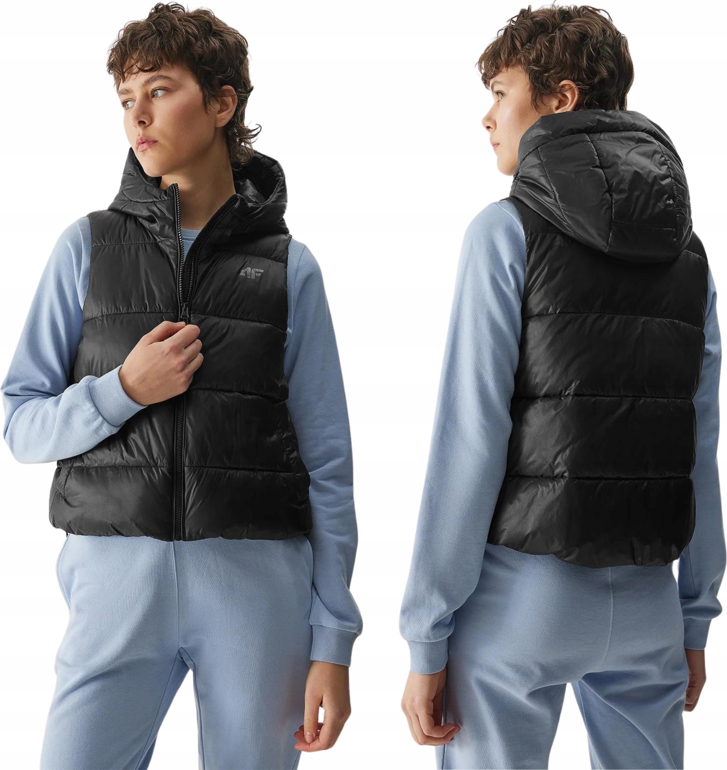 BEZRĘKAWNIK DAMSKI PUCHOWY 4F KAMIZELKA KURTKA Z KAPTUREM ŚCIĄGACZ S Iłża