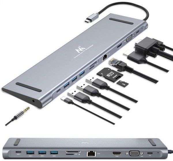 Maclean MCTV-850 11 w 1 USB C 3.1 Docking Station Hub adapter HDMI / 3X USB 3.0 / zasilanie USB-C / PD (Power Delivery) / VGA 1900 x 1200 @ 60Hz / RJ-45 / Audio 3,5mm port / czytnik kart SD/TF Producent: Maclean Stacja dokująca Maclean MCTV-850 to wielofunkcyjny adapter 11-w-1 USB C 3.1, idealny do …