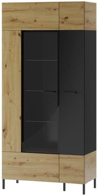 Witryna Lucas 12 dąb artisan/czarny mat Elegancka i efektowna witryna do salonu i pokoju dziennego. Ciemne wnętrze w kolorze czarnego matu oraz dębowe fronty tworzą niepowtarzalny i estetyczny design. Witryna doskonale sprawdzi się do przechowywania zastawy stołowej, pamiątek czy książek. Wysokie …