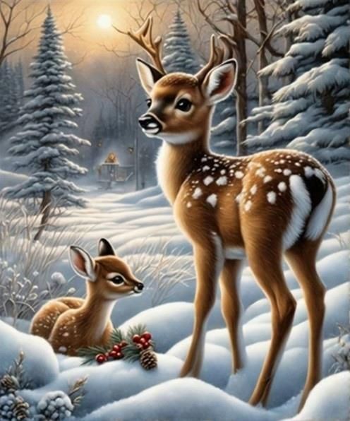 Diamentowa Mozaika Haft Kreatywny Jelonki W Zaśnieżonym Lesie 30X40 Cm Imielin