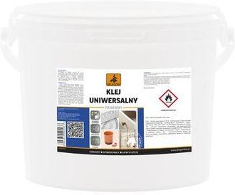 DRAGON Klej Uniwersalny Polimerowy 5kg Profesjonalny klej na bazie polimerów o szerokim spektrum zastosowań. Tworzy bezbarwne, wodoodporne spoiny o wysokiej wytrzymałości. Cechy produktu Polimerowy Bezbarwny Wodoodporny Do wewnątrz i na zewnatrz Dane techniczne Kolor kleju - bezbarwny lub lekko żółty Kolor spoiny - bezbarwny Konsystencja - wysokolepka ciecz Gęstość - 0,95 kg/L Lepkość - 10000-20000 mPas Czas otwarty - 10 minut Czas wstępnego wiązania - 1 h Czas pełnego wiązania - 24 h Wydajność - 4 - 6 m Produkt przeznaczony do klejenia ze sobą oraz do przyklejania do podłoża styropianu, kasetonów, płytek ceramicznych, ceramiki, szkła, drewna, materiałów drewnopodobnych, korka, wykładzin dywanowych, sztucznej skóry, papieru Sposób użycia Klejone powierzchnie należy dokładnie oczyścić z kurzu, odtłuścić "Denaturatem" DRAGON, osuszyć i w miarę możliwości dopasować do siebie. Pozostałości starych wymalowań usunąć „Zmywaczem farb i lakierów” DRAGON. Temperatura podłoża, otoczenia i klejonych elementów podczas klejenia i przez cały czas wiązania spoiny powinna być utrzymywana w granicach od +5 °C do +30 °C . Klej należy nakładać punktowo lub pasmami na podłoże lub element przyklejany. Powierzchnie porowate można pokryć klejem dwukrotnie. Po około 30 - 60 sekundach od zaaplikowania kleju złączyć klejone przedmioty i mocno docisnąć. Wstępny czas wiązana kleju wynosi 1 h. Pełną wytrzymałość spoina uzyskuje po 24 h. Narzędzia i świeże plamy czyścić "Denaturatem" DRAGON. Zaschnięty klej można usunąć jedynie mechanicznie. Po zakończeniu prac opakowanie z klejem szczelnie zamknąć.