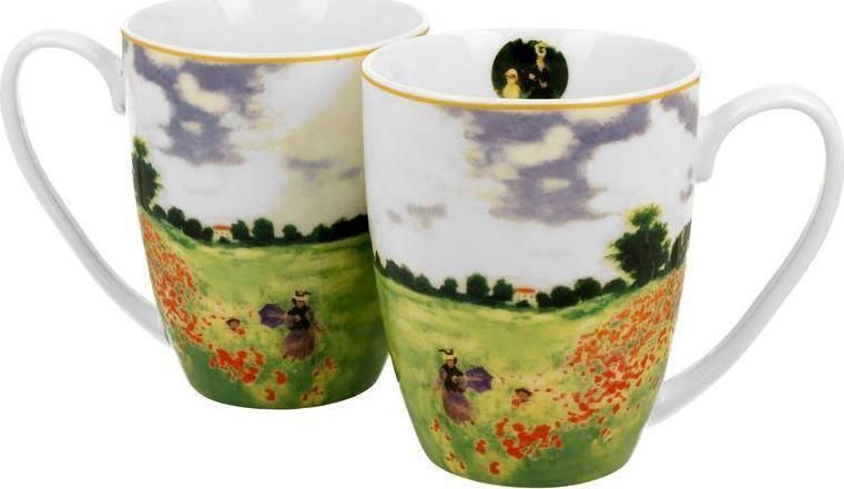 Komplet dwóch kubkówPOPPY FIELD C. Monet wchodzący w skład serii Art Gallery, wykonany z porcelany New Bone China, charakteryzującej się naturalnym kremowo-białym kolorem z delikatnym połyskiem oraz wyjątkową wytrzymałością i trwałością, zachowując lekkość i finezję. Pojemność kubka 350 ml (pojemność liczona po rant kubka). Linia wykonana z białej porcelany wewnątrz zdobionej fragmentem reprodukcji obrazu "Maki w pobliżu Argenteuil" Clauda Monet. Uroczy i delikatny obraz w pastelowych kolorach zaspokaja gusta nie tylko miłośników sztuki malarskiej. Całość zapakowana w ozdobne pudełko dekorowane tym samym motywem to doskonały pomysł na niebanalny prezent urodzinowy, a także podarunek dla szefa czy nauczyciela, również jako podziękowanie. Idealny jako prezent dla fanów nowoczesnego designu oraz malarstwa. Komplet idealnie sprawdzi się na długie wieczory we dwoje. "Maki w pobliżu Argenteuil" z 1873 r. to jeden z najbardziej znanych obrazów francuskiego impresjonisty. Artysta po raz kolejny przedstawia swój ulubiony motyw czyli plener, gdzie swobodnie oddaje ruch przy jednoczesnym zachowaniu spokoju sielskiego klimatu. Malowidło przedstawia jego żonę i syna niedaleko ich domu w Argenteuil. Wzór: Monet "Maki w pobliżu Argenteuil" Produkt 2 x kubek 1 x prezentowe pudełko Wymiary wysokość 10,5 cm średnica kubka 8 cm pojemność całkowita kubka 350 ml pojemność użytkowa kubka około 320 ml Materiał porcelana Użytkowanie dopuszczone do kontaktu z żywnością można myć w zmywarkach można używać w mikrofali