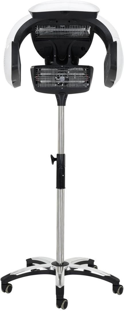 Gabbiano to luksusowa włoska marka urządzeń oraz mebli fryzjerskich, którą wyróżnia niezawodność, jakość i estetyka wykonania oraz wysoki komfort użytkowania. W ofercie posiada duży wybór funkcjonalnych elementów wyposażenia salonu, takich jak fotele, myjnie czy infrazony. Urządzenie zapewniające profesjonalizm pracy Profesjonalny infrazon stojący Gabbiano Y-707 to urządzenie niezbędne podczas wykonywania zabiegów takich jak: koloryzacja, rozjaśnianie, zabiegi pielęgnacyjne czy suszenie, a także stylizacji trwałych i innych usług, przy których przydatna jest wysoka temperatura. Urządzenie znaczenie skraca czas trwania zabiegu, pozwalając przyjąć większą liczbę klientów przy zachowaniu wysokiej jakości świadczonych w salonie usług. Przejrzysty panel sterowania Elektroniczna regulacja parametrów znacznie ułatwia pracę fryzjera. Urządzenie wyposażone jest w intuicyjny panel sterowania z czytelnym wyświetlaczem LCD, co gwarantuje prostą obsługę. Przy jego użyciu można sprawnie przełączać się między automatycznymi trybami pracy, ustawiać niezależnie od siebie moc każdego z pięciu nawiewów, temperatury (w zakresie 50-80 °C) czy czasu trwania zabiegu (między 1 a 60 min). Odczuwalnie usprawnia wykonywanie różnorodnych zabiegów. Dostępne tryby pracy Tryb pracy można dostosowywać indywidualnie w zależności od potrzeb lub skorzystać z jednej z pięciu zaprogramowanych opcji, dedykowanych zwłaszcza do: suszenia, koloryzacji, pielęgnacji, pasemek, trwałej ondulacji. Każdy z nich ma specjalnie dobrane ustawienia, by jak najbardziej poprawić efektywność zabiegów. Użycie sprzętu znacznie przyśpiesza proces farbowania, zapewnia wysoką wchłanialność produktów pielęgnacyjnych, a także gwarantuje zwiększenie trwałości koloru. Urządzenie jest doskonałym uzupełnieniem wyposażenia salonu fryzjerskiego, znacznie usprawniając wykonywanie szerokiej gamy usług. Prosty, funkcjonalny design Futurystyczna obudowa wykonana z trwałego tworzywa sztucznego w odcieniach bieli nadaje urządzeniu nowoczesnego i wyjątkowego wyglądu, dzięki czemu wpasuje się w większość wnętrz. Podstawę infrazonu stanowi pięcioramienny pająk wyposażony w kółka, które zapewniają mobilność, oraz regulowany w zakresie 135-176 cm statyw, gwarantujący komfortową pracę i dostosowanie urządzenia do różnych potrzeb. Wymiary urządzenia podano na zdjęciu. Dane: Kolor: odcienie bieli Regulacja temperatury: 50-80 °C Nawiew pięciowiatrakowy Moc: 1500-1800 W Napięcie wejściowe: 220-240 V...
