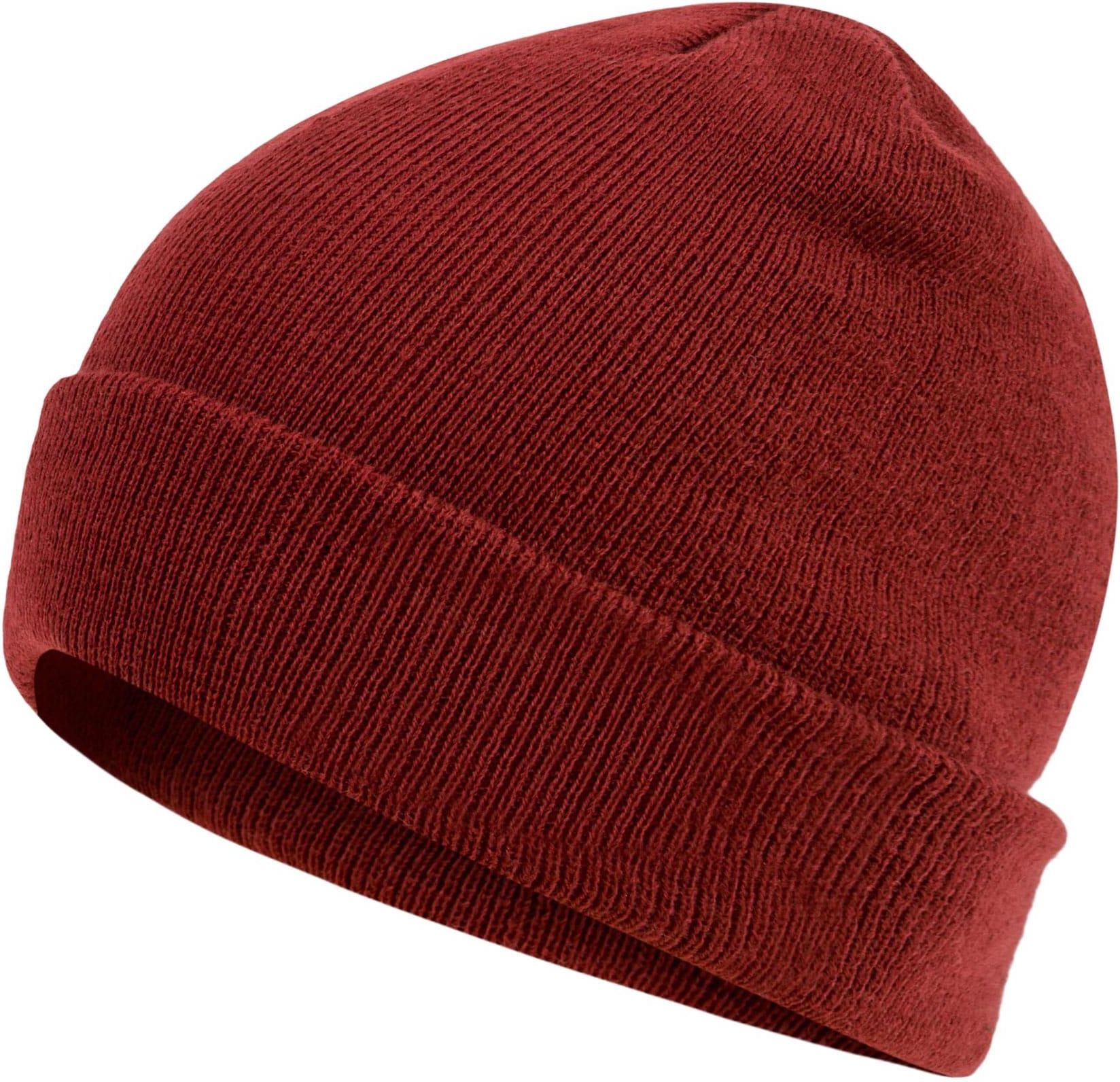Czapka typu beanie w kolorze czerwonym, uszyta z miękkiej dzianiny akrylowej i wyposażona w wodoodporną podszewkę. Propozycja dla osób poszukujących ciepłego nakrycia głowy na chłodne oraz nieprzewidywalne warunki pogodowe.