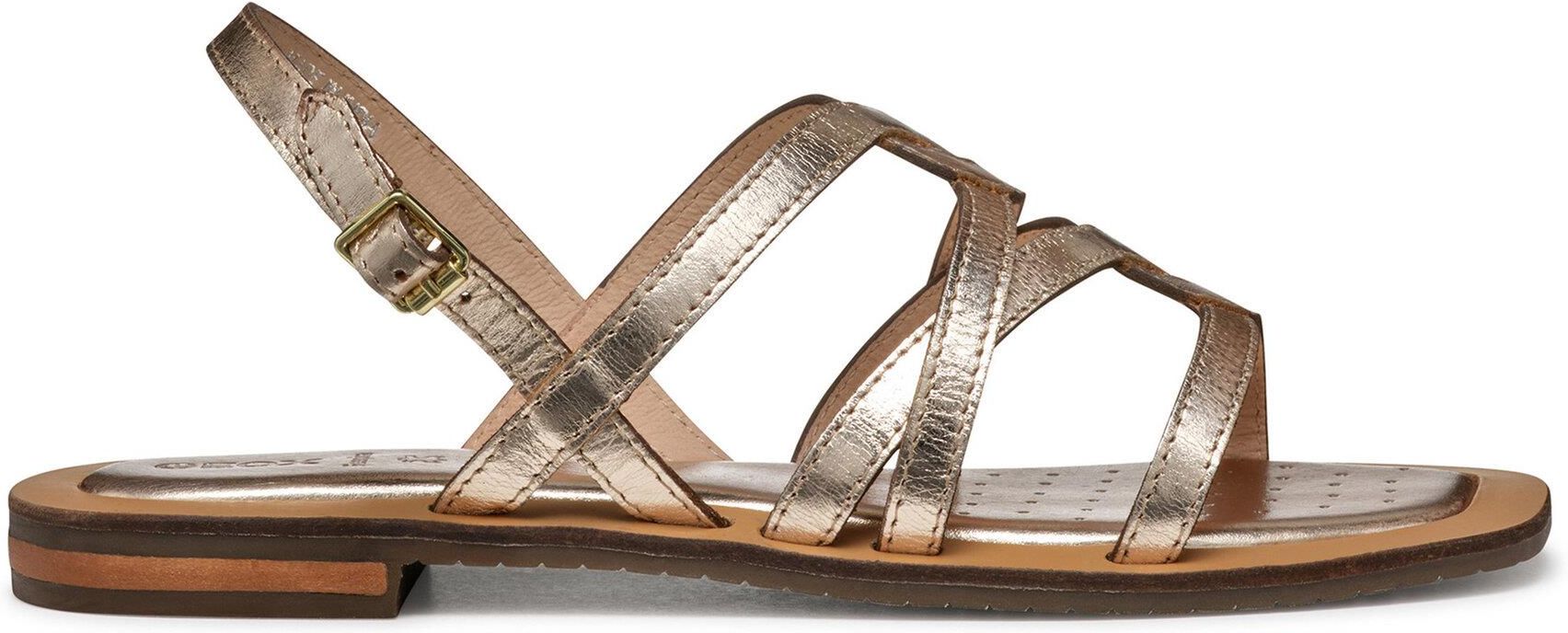 Złote sandały marki Geox to harmonijne połączenie elegancji i innowacyjności, które wyróżni każdą kobiecą stylizację. Wykonane z wysokiej jakości skóry naturalnej licowej, zapewniają trwałość i stylowy wygląd. Dzięki technologii Geox Respira gwarantują doskonałą oddychalność, co przekłada się na maksymalny komfort noszenia nawet w upalne dni. Zapięcie na sprzączkę umożliwia idealne dopasowanie do stopy, podkreślając ich wyjątkową funkcjonalność. Sięgnij po ten model i ciesz się luksusem na co dzień!