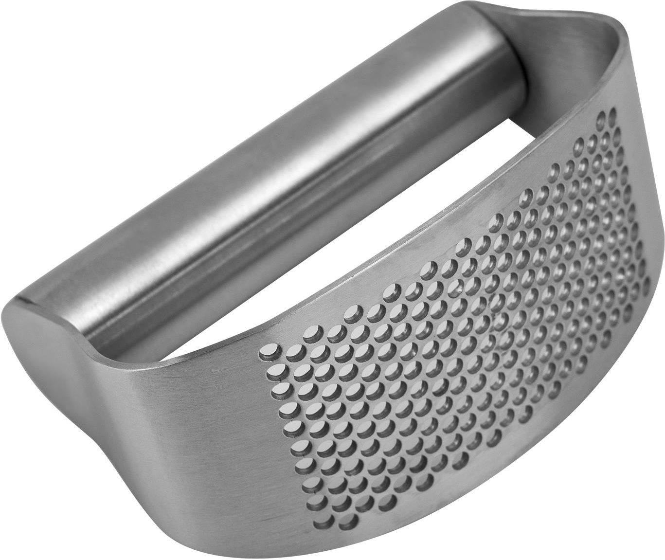 Siekacz/wyciskacz do czosnku Practico 15701 Metalowy wyciskacz do czosnku z serii Practico. Bardzo poręczny i niezwykle praktyczny. Nieodłączny element wyposażenia kuchni. Wyciskacz wykonany jest w całości ze stali nierdzewnej. Posiada gładką rączkę, która dobrze leży w dłoni. Tarka umieszczona na półokrągłej powierzchni pozwala z kolei dokładnie docisnąć czosnek i ugniatać go wykonując ruchy kołyski. Czosnek będzie dokładnie rozgnieciony i przeciśnie się przez liczne otworki tarki. Przyrząd jest bardzo higieniczny, gdyż kontakt dłoni z czosnkiem praktycznie się nie odbywa. Zatem nie ma ryzyka przeniesienia intensywnego zapachu ząbków na ręce. Wyciskacz jest znacznie wygodniejszy w użyciu i stanowi doskonałą alternatywę dla praski do czosnku. Na pewno wyręczy nas z ręcznego siekania czosnku - co dla niektórych stanowi nie lada wyczyn z uwagi na uciążliwą woń tej przyprawy. Produkt przystosowany do zmywarki. Szerokość (cm): 5 Wysokość (cm): 6,5 Długość/głębokość (cm): 11 Waga (kg): 0,145 Można myć w zmywarce: Tak Materiał wykonania: Stal nierdzewna nr katalogowy (329344)