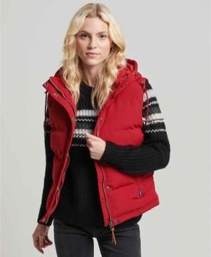 Superdry Dla Kobiet W5010907A Pikowana Kamizelka Z Kapturem Everest Czerwona Xl Czerwony Zwykły Nylon Zrównoważony Imielin