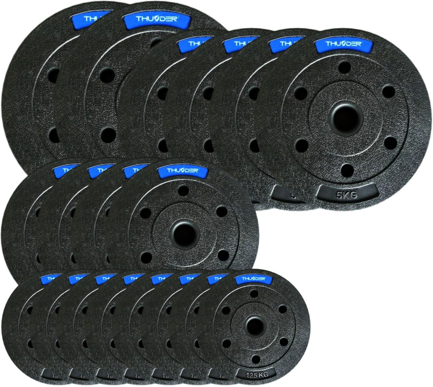 Zestaw treningowy SET-B-07-60KG marki ⚡THUNDER®️⚡- profesjonalny sprzęt do ćwiczeń ✅PARAMETRY OBCIĄŻENIA: ➡️Waga: 60 kg ✅Zestaw obciążeń zawiera: ➡️ 2x10 kg ➡️Średnica otworu: 31 mm ➡️ 4x5 kg ➡️Średnica otworu: 31 mm ➡️ 4x2,5 kg ➡️Średnica otworu: 31 mm ➡️ 8x1,25 kg ➡️Średnica otworu: 31 mm ✅SOLIDNE WYKONANIE ➡️Obciążenie wykonane jest z kompozytu cementu i piachu. Z zewnątrz powleczone jest warstwą ochronną z tworzywa sztucznego pełniącą rolę wygłuszającą oraz amortyzującą. ➡️Talerze kompozytowe posiadają tłoczone oznaczenia wagi. Pasują do większości gryfów dostępnych na rynku. ✅ ZALETY ➡️Idealny do treningu siłowego w zaciszu domowym. ➡️Ciężary kompozytowe zapewniają duży komfort treningu, głównie dzięki grubej warstwie wygłuszającej. ➡️Logowania w kolorze niebieskim dodają talerzom unikalnego charakteru.