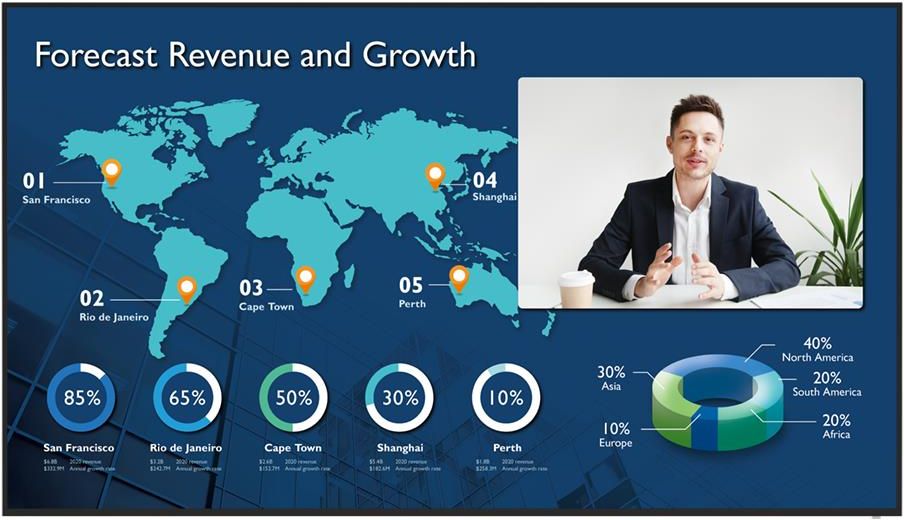 CS6501 to monitor 4K UHD klasy korporacyjnej zaprojektowany z myślą o bardzo angażujących spotkaniach, prezentacjach i wideokonferencjach.Rzucaj i kontroluj swoje prezentacje z łatwością Spotkania z wykorzystaniem aplikacji Zoom i innych aplikacji konferencyjnych Współpracuj za pomocą intuicyjnych narzędzi do prowadzenia spotkań Synchronizacja i wyświetlanie wszystkich harmonogramów spotkań Wygodne zarządzanie urządzeniami i powiadomieniami push Zaangażuj swoich odbiorców Wykonaj więcej pracyDzięki odpowiedniemu wyświetlaczowi łatwo przyciągniesz uwagę słuchaczy. Seria CS oferuje nie tylko wyraźne obrazy, ale także narzędzia i funkcje, które upraszczają konfigurację i sprzyjają dyskusji opartej na współpracy. Ułatwiliśmy Ci prezentacjęUsunęliśmy wszystkie rzeczy, które mogą ukraść Twój czas i oderwać uwagę od prezentacji. CS upraszcza przygotowania do spotkania, eliminując konieczność stosowania kabli, dysków, a nawet laptopów. Bezbłędna projekcja bezprzewodowaMasz dość kabli? My też. Dzięki CS możesz bezprzewodowo udostępniać nawet cztery* ekrany za pomocą funkcji InstaShare. Na antyodblaskowym wyświetlaczu 4K o jasności 450 nitów widać wszystko w najdrobniejszych szczegółach. *Współdzielenie do 9 ekranów będzie obsługiwane w 2021 roku. Kontrola każdej sesjiCS jest wyposażony w potężny pilot zdalnego sterowania, który pełni funkcję klikera i wskaźnika. Można go używać jako kursora do przesuwania elementów na ekranie lub uzyskać dostęp do pływającego narzędzia do dodawania adnotacji lub nagrywania prezentacji. Dostęp do plików w locieNie masz notebooka lub dysku USB? Nie ma problemu. Dzięki BenQ's Account Management System (AMS), możesz uzyskać dostęp do swoich dokumentów, arkuszy i slajdów poprzez chmurę i edytować je bezpośrednio na CS przy użyciu WPS. Więcej sposobów na współpracęRób więcej niż tylko prezentuj. Dzięki wielu wbudowanym funkcjom stworzonym z myślą o efektywnej pracy zespołowej, możesz zmaksymalizować czas spotkań i wykorzystać ekran CS jako funkcjonalną przestrzeń roboczą do współpracy. Praca z każdą platformąRób dwie rzeczy naraz. Dzięki Duo OS można otworzyć okno systemu operacyjnego, aby kontynuować pracę na CS, a jednocześnie korzystać ze specjalistycznego oprogramowania, takiego jak AutoCAD lub Photoshop, z komputera z gniazdem lub urządzenia zewnętrznego. Bądź na tej samej stronieNie musisz przełączać się z aplikacji do aplikacji. Dzięki Duo Windows możesz pracować jednocześnie na dwóch aplikacjach obok siebie. Mając wszystkie istotne informacje na wyświetlaczu, możesz zawsze skupić się na wykonywanym zadaniu. Weź się do pracyTablica w chmurze EZWrite przenosi współpracę na wyższy poziom. Umożliwiając uczestnikom dodawanie notatek i multimediów na ekranie za pomocą ich własnych urządzeń, spotkania stają się bardziej praktyczne, co zwiększa zaangażowanie. Twoja konferencja, Twoja rozmowaDzięki elastycznemu wyświetlaczowi, który dostosowuje się do sposobu, w jaki się spotykasz, możesz wygodnie prowadzić lub dołączać do wideokonferencji dzięki odpowiedniemu oprogramowaniu i kamerze, które pasują do wymagań spotkania. Wybierz spośród najlepszychNawiązaliśmy współpracę z firmą Zoom, aby poprawić jakość Twoich wideokonferencji. Oprócz Zoom Rooms lub preinstalowanego TeamViewer Meeting, możesz również korzystać z Cisco Webex, Microsoft Teams i innych najlepszych aplikacji* za pośrednictwem komputera z gniazdem OPS. Poinformowani i zawsze gotowiPokoje? Ogłoszenia? Mamy wszystko pod kontrolą. Seria CS ma zintegrowane rozwiązania, które pozwalają rezerwować sale z wyprzedzeniem i na bieżąco informować zespoły. Łatwa rezerwacja pokoiRezerwuj ekrany za pośrednictwem aplikacji Meeting Room 365 jednocześnie wysyłając zaproszenia na spotkania.* Widżet informuje wszystkich na bieżąco o zbliżających się spotkaniach i harmonogramach sal. *Aplikacji Meeting Room 365 można używać z programami Microsoft Outlook, Microsoft Office 365, Microsoft Exchange i Google Workspace. Natychmiastowe powiadomienia PushInformuj swoich współpracowników na bieżąco. W przypadku aktualnych i ważnych komunikatów można użyć funkcji X-Sign Broadcast aby przesłać wiadomości do jednego lub kilku wyświetlaczy w sali konferencyjnej w biurze. Uproszczone zarządzanieUwolnij się od kłopotów. Usprawniliśmy zarządzanie urządzeniami i użytkownikami, dzięki czemu możesz skupić się na rzeczach, które są dla Ciebie ważniejsze. Bezproblemowe zarządzanieLokalnie lub zdalnie, możesz zainstalować aplikacje lub centralnie monitorować, zarządzać i aktualizować wiele wyświetlaczy z łatwością poprzez BenQ Device Management Solutio (DMS). Łatwe zarządzanie użytkownikamiDodaj użytkowników i edytuj uprawnienia dla wszystkich swoich wyświetlaczy w jednym kroku. System zarządzania tożsamością i dostępem (IAM) firmy BenQ synchronizuje się z serwerem AD w celu bezproblemowego zarządzania użytkownikami. Ochrona danych i urządzeńObroń wszystkie swoje wyświetlacze przed złośliwym oprogramowaniem, jednocześnie zabezpieczając swoje dane firmowe. BenQ oferuje Ci bezpieczeństwo IoT poprzez McAfeeMobile Security. Kontrola na wyciągnięcie rękiKorzystasz już z usług firmy Extron? W takim razie nie ma potrzeby zmiany. CS w pełni integruje się z systemem Extron, dzięki czemu można łatwo dostosować wyświetlacze do własnych potrzeb bez konieczności zmiany kontrolerów systemu. Rozwiązywanie problemów w czasie rzeczywistymPotrzebujesz wsparcia technicznego? Zaoszczędź czas i wysiłek swoich administratorów, wykorzystującg TeamViewer Meeting na swoim monitorze do zdalnej oceny i rozwiązywania problemów w czasie rzeczywistym. Dostęp do wirtualnej przestrzeni roboczejZa pomocą VMware można wywołać dowolny wirtualny pulpit na CS, aby uzyskać n