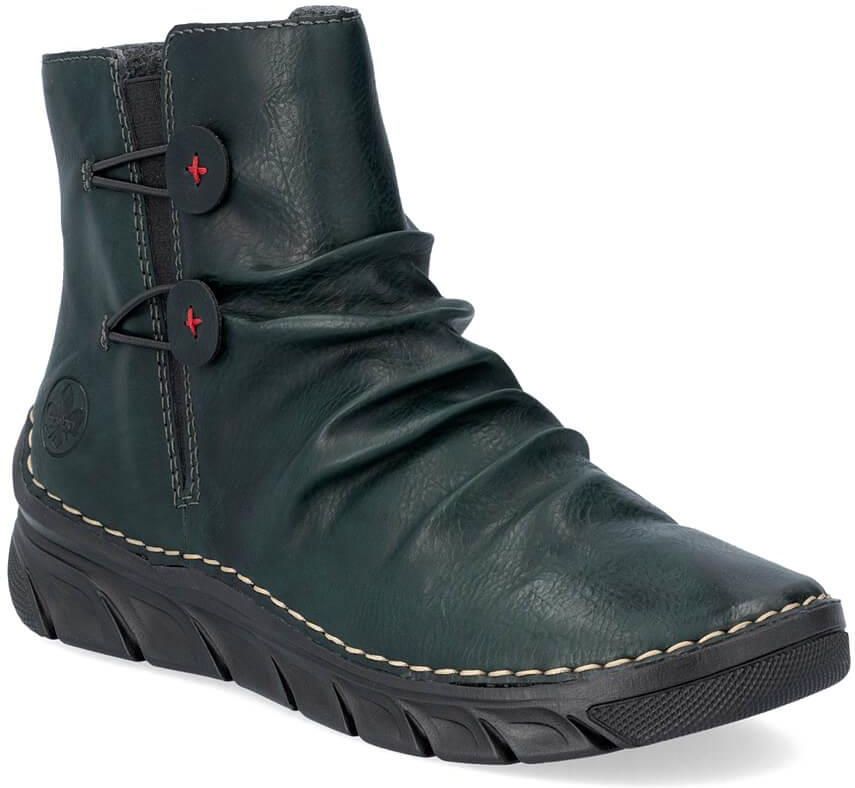 Hier präsentiert Rieker eine moderne und komfortable Stiefelette! Strapazierfähiges synthetisches Obermaterial mit Zierknöpfe und Raffung. Seitlicher Reißverschluss für das mühelose und schnelle An- und Ausziehen. Angenehme Innenausstattung mit anschmiegsamen und weichen Eigenschaften. Die profilierte Laufsohle bietet besten Laufkomfort auf den unterschiedlichsten Untergründen.