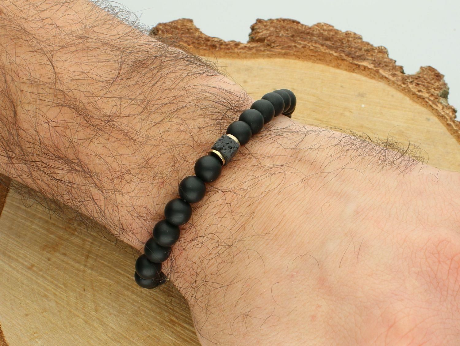 Bransoletka męska koraliki onyks DIA-BRA-12568-INNE. Bransoletka na gumce to biżuteria cechująca się oryginalnością i wygodą, która zachwyci każdą kobietę. Oryginalny pomysł na prezent. Elegancka bransoletka wykonana z koralików o intrygującej powierzchni. Okrągłe elementy zostały wykonane kamieni …