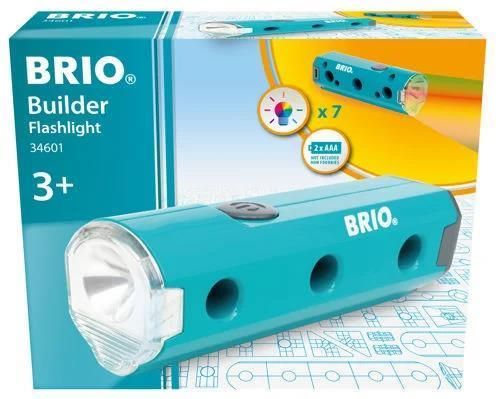 Latarka Brio Builder W pełni kompatybilna z zestawami Brio Builder, ta poręczna latarka może być dołączona do innych narzędzi Builder, takich jak śrubokręt 34600, lub zintegrowana z otwartymi kreacjami do pomysłowej zabawy i eksperymentowania. Latarnia samochodowa, lampa stołowa czy reflektor? Jakie pomysły możesz wcielić w życie? Wyposażona w żarówki LED, które mogą świecić w różnych kolorach, ta zabawkowa latarka świeci jasno podczas zabawy. Wymaga 2 baterii AAA.