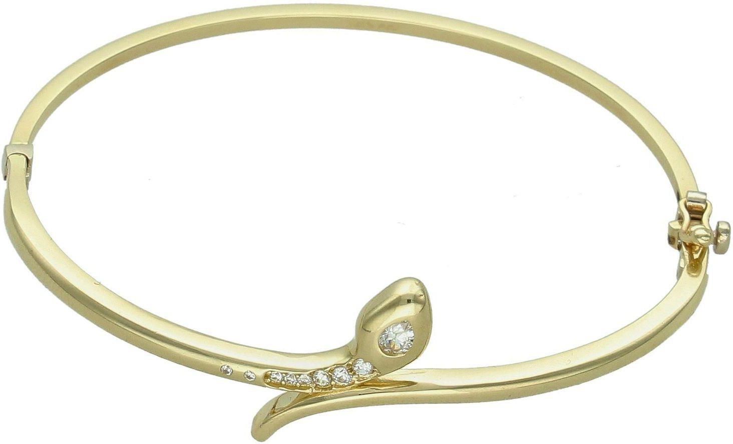 Bransoletka sztywna z motywem węża żmija próba 585 DIA-BRA-12184-585 wąż.Złota bransoletka wykonana z 14 karatowego żółtego złota. Bransoletka to idealny pomysł na prezent. Złota bransoletka sztywna wykończona wężem, ozdobionego z cyrkoniami. Bransoletka o oryginalnym wzorze ładnie układającym się …