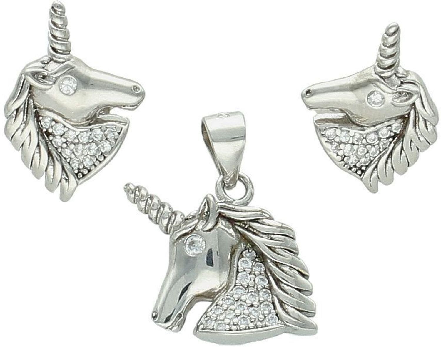 Diament Komplet srebrny jednorożce z cyrkoniami próba 925 AS6127 – kolczyki i zawieszka dla dziewczynki i mamy Inowrocław