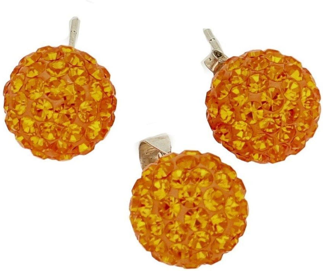 Komplet srebrny kulki pomarańczowe Swarovski Srebrne kolczyki kulki wykonane z drobnych pomarańczowych kryształków Swarovskiego. Dodające blasku każdej, nawet najprostszej stylizacji. Kolczyki są wykonane ze srebra próby 925 na zapięcie typu sztyft. Będą pięknym prezentem dla kobiety kochającej …