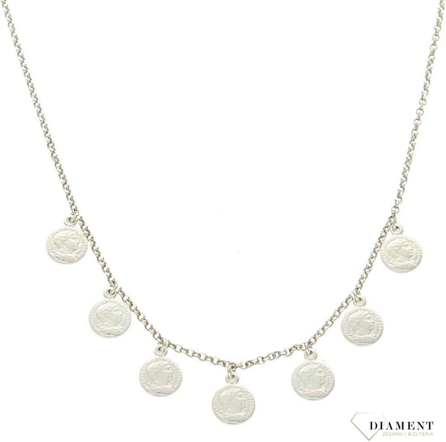 Naszyjnik srebrny z modnym wzorem monet. Naszyjnik składa się z delikatnego ażurkowego łańcuszka. Naszyjnik został wykonany z najwyższej jakości srebra próby 925. Naszyjnik ozdobiony został elementami wiszącymi w postaci monetek, które są rozłożone w równych odległościach od siebie. Długość naszyjnika wynosi 38 cm, z możliwością przedłużenia o kolejne 4 cm. Poprzez możliwość regulacji długość naszyjnika można dopasować do każdej osoby. Naszyjnik można nosić na co dzień, ale również na ważne, eleganckie wyjścia. Naszyjnik srebrny ozdobi każda stylizację. Idealny pomysł na prezent dla kobiet w różnym wieku. Zapraszamy do zapoznania się z ofertą, w której znajduję się również bransoletka z tego samego modelu. Srebrna biżuteria dostępna w naszym sklepie to połączenie klasy, stylu oraz elegancji. Starannie wyselekcjonowane dodatki zachwycają wysoką jakością użytych materiałów, dbałością o każdy, nawet najmniejszy szczegół oraz niebywałą precyzją wykonania. Stworzone z myślą o każdej kobiecie, doskonale prezentują się w każdych warunkach. Zapraszamy do zapoznania się z pozostałą częścią naszej wyjątkowej kolekcji. Stwórz komplet! > Bransoletka Zerknij na pozostałą ofertę! > Bransoletki damskie > Kolczyki srebrne > Pierścionki srebrne > Naszyjniki srebrne Nasz sklep internetowy ze złotą i srebrną biżuterią Diament jest autoryzowanym dystrybutorem marki. Cała kolekcja złotej i srebrnej biżuterii Diament zakupiona w naszym sklepie posiadają 2 letnią gwarancję i zapakowane są w oryginalne opakowanie.