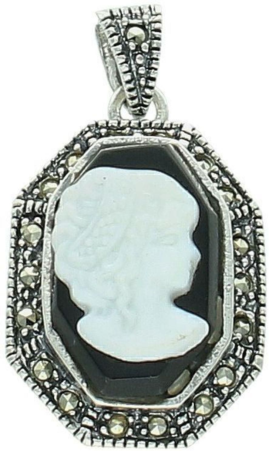 Diament Srebrna zawieszka KAMEA Pani Walewska DIA-ZAW-13019-925 | Onyx, masa perłowa i markazyty – Srebro 925 Inowrocław
