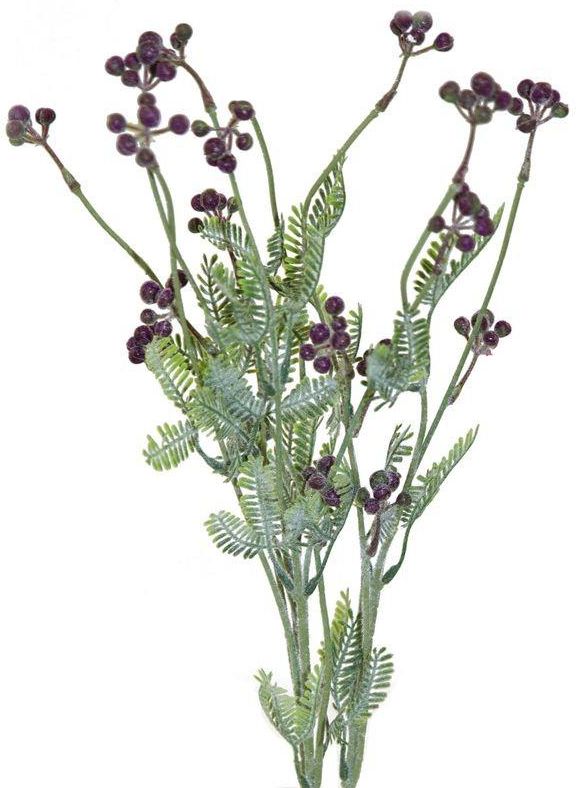 Gałązka ozdobna wykonana z plastiku i pokryta delikatnym meszkiem, wygląda jak świeżo zerwana z letniej łąki. Na jednej gałązce znajduje się osiemnaście kwiatostanów złożonych z drobnych kuleczek. Ozdobna gałązka wykonana z niezwykłą dbałością o detale, zachwyca naturalnym pięknem i jest idealnym dodatkiem do letnich bukietów i kompozycji kwiatowych.