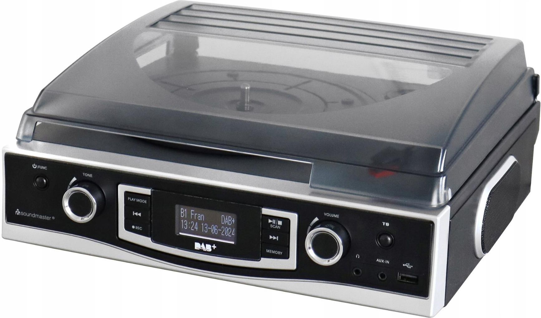 CECHY Odtwarzacz płyt winylowych Wbudowany moduł Bluetooth Radio DAB+ i FM Odtwarzacz CD/MP3 Port USB z funkcją nagrywania Soundmaster PL910 – wszechstronne centrum muzyczne Soundmaster PL910 to zaawansowane centrum muzyczne z serii Elite Line, które łączy w sobie klasyczny design z nowoczesnymi funkcjami. Urządzenie umożliwia odtwarzanie muzyki z różnych źródeł, zapewniając bogate i wszechstronne doświadczenia dźwiękowe. Wszechstronność odtwarzania PL910 pozwala na odtwarzanie płyt winylowych z prędkościami 33 1/3, 45 oraz 78 obr./min, co umożliwia słuchanie zarówno nowoczesnych, jak i starszych nagrań. Dodatkowo, wbudowany odtwarzacz CD/MP3 oraz tuner radiowy DAB+ i FM rozszerzają możliwości urządzenia, pozwalając na korzystanie z różnorodnych źródeł muzyki. Nowoczesna łączność Dzięki wbudowanemu modułowi Bluetooth, PL910 umożliwia bezprzewodowe strumieniowanie muzyki z kompatybilnych urządzeń, takich jak smartfony czy tablety. Port USB z funkcją nagrywania pozwala na digitalizację ulubionych utworów z płyt winylowych czy CD, co ułatwia ich archiwizację i odtwarzanie na innych urządzeniach. Czym jest gramofon? Gramofon to urządzenie służące do odtwarzania dźwięku zapisanego na płytach winylowych. Dzięki obrotowemu talerzowi i igle poruszającej się w rowkach płyty, gramofon odczytuje zapis analogowy i przekształca go w dźwięk. Współczesne gramofony, takie jak Soundmaster PL910, łączą tradycyjną funkcjonalność z nowoczesnymi technologiami, oferując dodatkowe opcje odtwarzania i łączności. Specyfikacja brązowy Bluetooth Port USB Odtwarzacz CD/MP3