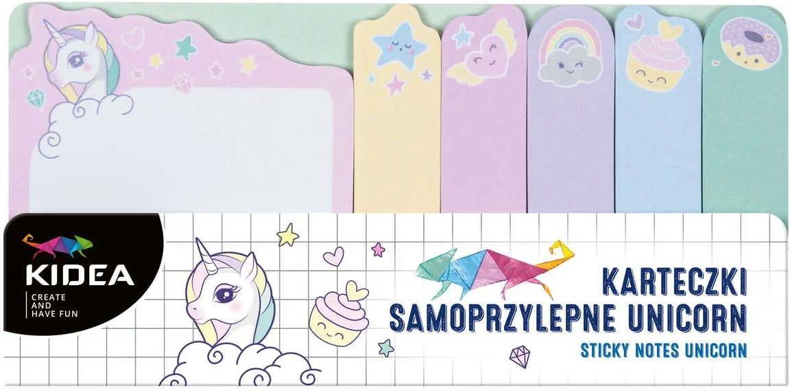 Karteczki samoprzylepne unicorn DERFORM ✅ ✔️ Karteczki samoprzylepne Kidea z magicznym jednorożcem. W zestawie znajdują się pastelowe karteczki z miejscem na notatki oraz karteczki do zaznaczania z bajkowymi wzorami. Karteczki są kompaktowe i z łatwością mieszczą się w piórniku a ich pastelowe …