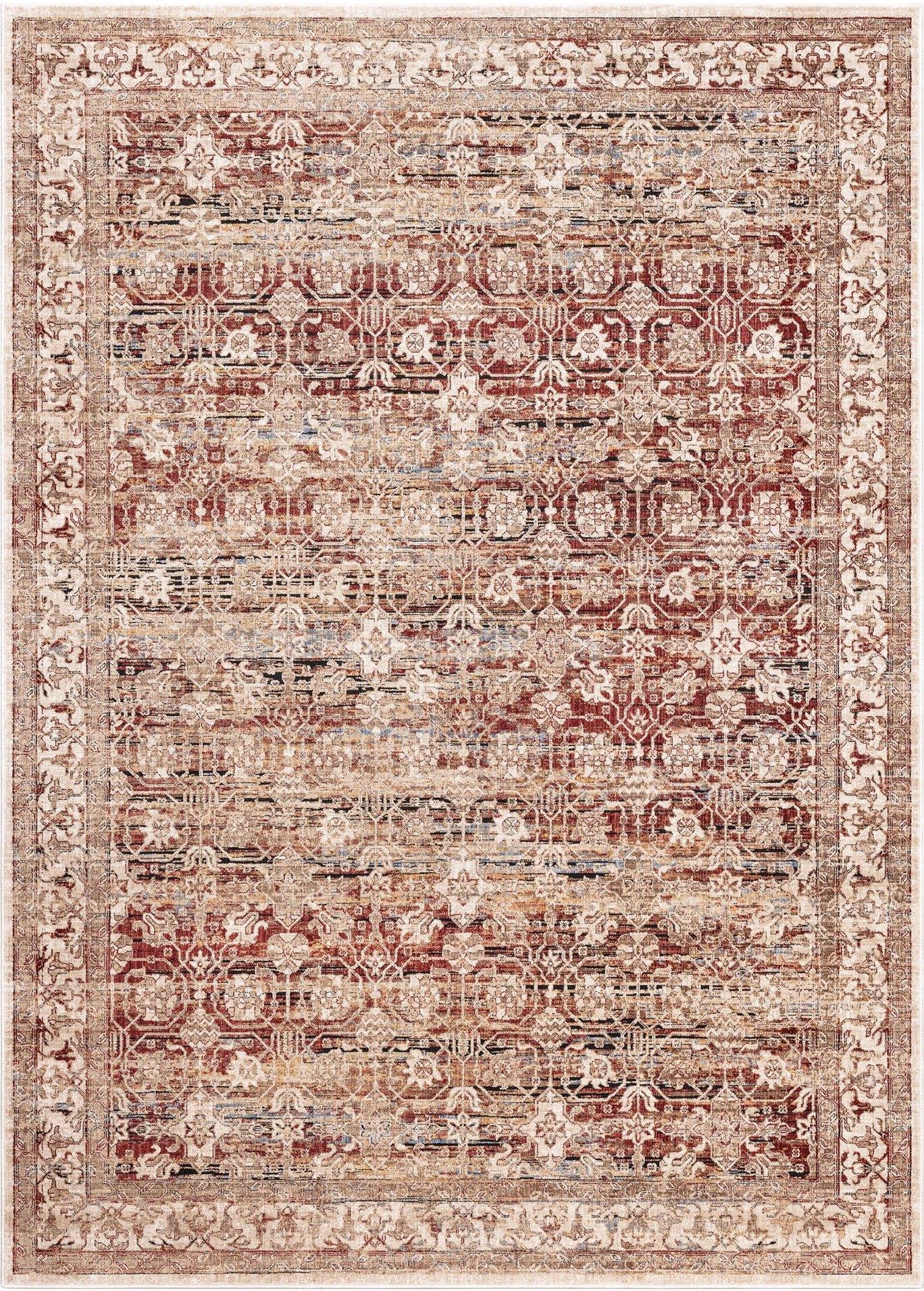 Dywan tradycyjny Ornella Anubis 80x120 to model, którego wzór inspirowany estetyką orientalną oraz tradycyjną wprowadzi do wnętrza wyjątkową dekorację. Dywan czerwony wzbogacony o odcienie kremu oraz beżu znakomicie odnajdzie się w salonie oraz sypialni. Ponadczasowy model o wyjątkowo dekoracyjnym deseniu powstał metodą tkania maszynowego. Jego wymiary wynoszą 80x120 cm. Wykonany z poliestru, gwarantuje trwałość, odporność na uszkodzenia mechaniczne oraz łatwość pielęgnacji. Przytulna kolorystyka dywanu nie blaknie pod wpływem środków chemicznych oraz promieniowania UV. Model odpowiedni do użytkowania na systemie ogrzewania podłogowego jest odporny na trwałe zabrudzenia, udeptywanie oraz przetarcia. Sprężysta struktura włókien błyskawicznie odzyskuje elastyczność nawet po długotrwałym nacisku. Produkt objęty dwuletnią gwarancją dedykowany jest także alergikom. Antystatyczne runo nie przyciąga kurzu i nie sprzyja rozwojowi drobnoustrojów.