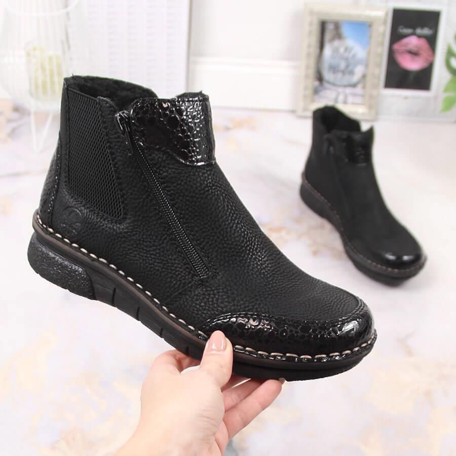 Komfortowe botki damskie na suwaki ocieplane czarne Rieker 73355-00 Inowrocław