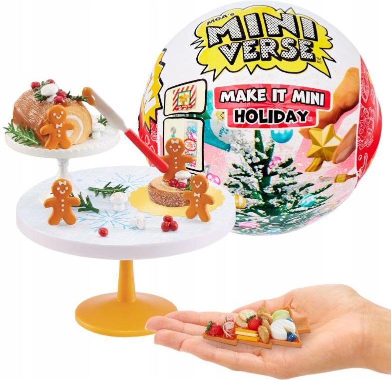 MGA MINIVERSE MAKE IT MINI HOLIDAY ŚWIĄTECZNA KULA Jak prawdziwe jedzenie! Witaj w magicznym świecie Miniverse od MGA, gdzie Twoja kreatywność spotyka świąteczną radość! Te urocze zestawy DIY to prawdziwe małe cuda, które pozwolą Ci stworzyć wyjątkowe dekoracje i przenieść atmosferę świąt na zupełnie nowy poziom. Każda tajemnicza kulka skrywa w sobie niespodziankę – realistyczne mini „składniki” oraz drobiazgowo wykonane akcesoria, które pozwolą Ci stworzyć idealne repliki Twoich ulubionych świątecznych przedmiotów. Rozpakowanie każdej kulki to ekscytujący moment – nigdy nie wiesz, co znajdziesz w środku, dopóki nie odkryjesz wszystkich elementów! W środku czeka na Ciebie przewodnik kolekcjonerski, który pomoże Ci zidentyfikować swoją niespodziankę, oraz karta „przepisu”, która poprowadzi Cię przez proces tworzenia krok po kroku. To jak tworzenie własnej, miniaturowej wersji świątecznego raju! Odkryj swój świąteczny przepis! Każdy element został zaprojektowany z niezwykłą dbałością o szczegóły, od maleńkich dekoracji po akcesoria, które wyglądają, jakby zostały pomniejszone z rzeczywistego świata. Kiedy złożysz swoją mini replikę, poczujesz dumę i radość, widząc, jak każdy szczegół ożywa pod Twoimi palcami. A kiedy już ukończysz swoją świąteczną dekorację, wystarczy ustawić ją na wybranym miejscu, gdzie będzie cieszyć oko i wprowadzać w świąteczny nastrój. Każdy zestaw Miniverse to nie tylko okazja do kreatywnej zabawy, ale także szansa na stworzenie niepowtarzalnej kolekcji. To wyjątkowy sposób, by przeżyć magię świąt w nowy, pełen detali sposób. Czy jesteś gotowy odkryć, co kryje się w Twojej świątecznej kulce i dołączyć do grona kolekcjonerów Miniverse? Razem stworzymy magiczne święta! Informacje W zestawie: Kula-niespodzianka, Składniki do wykonania jednej mini świątecznej przekąski lub dekoracji, Instrukcja, Wiek: 8+ Producent: MGA Seria: MGA's Miniverse Make It Mini Holday Zabawka nie służy do jedzenia!