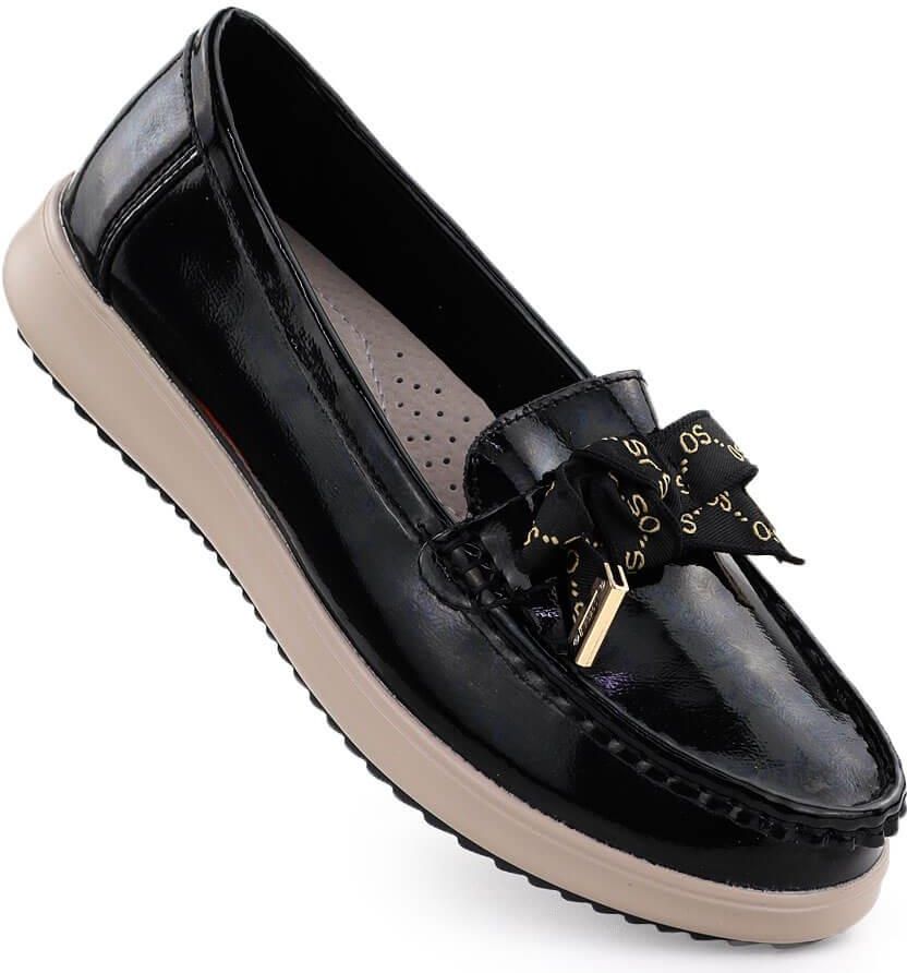 Skórzane mokasyny lakierowane z kokardą czarne Filippo DP6457 Inowrocław