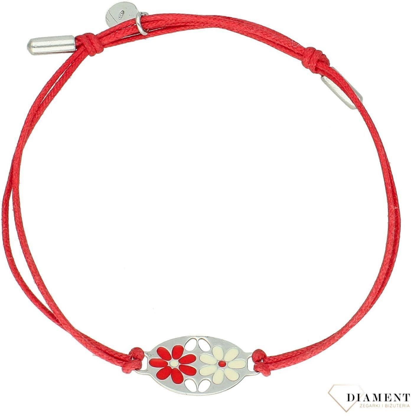 Srebrna bransoletka damska 925 na czerwonym sznurku kolorowe Kwiatki Inowrocław